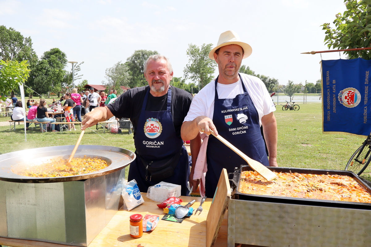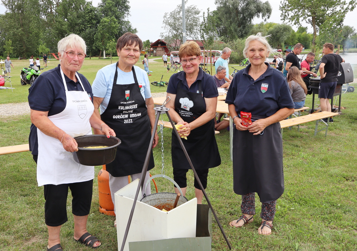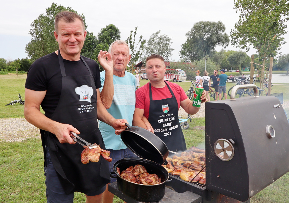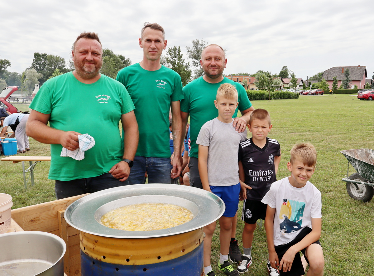 Tako se tu mogu naći, primjerice, juha od vrganja, pohani patuljasti somići, pečeni šnicli, dinstano meso s povrćem, pohana piletina i krumpir salata, meso s roštilja, hot dog, špageti bolonjez i dr. Ovom veselom druženju priključio se i načelnik Općine Goričan Emanuel Sinković, koji u ime tima općine kuha fiš paprikaš.
