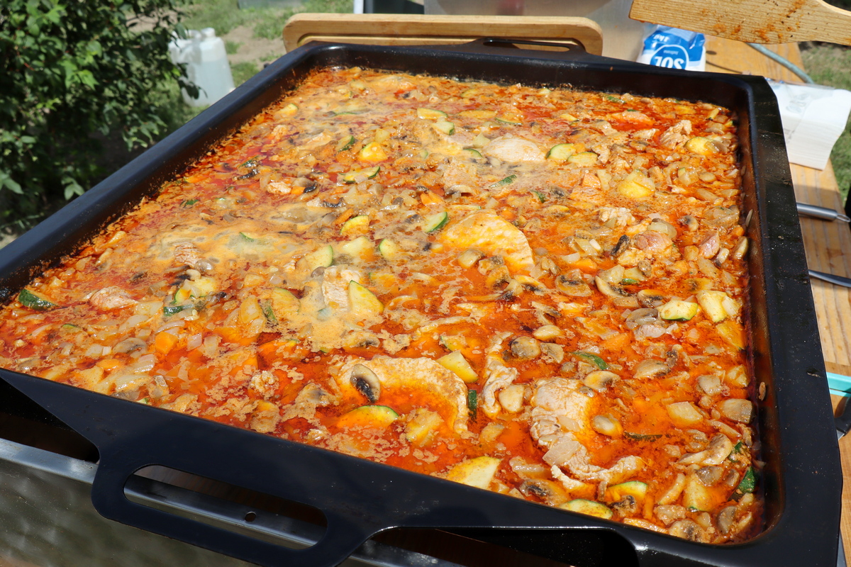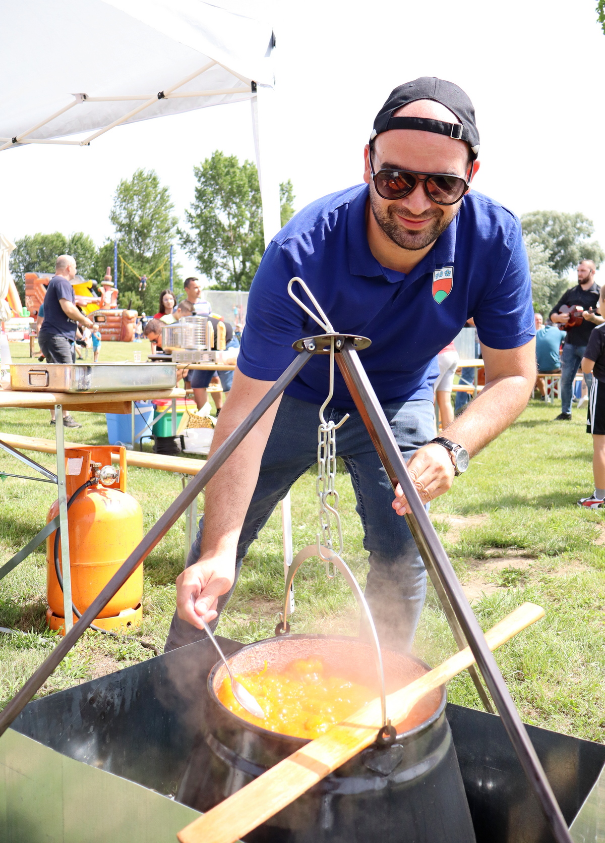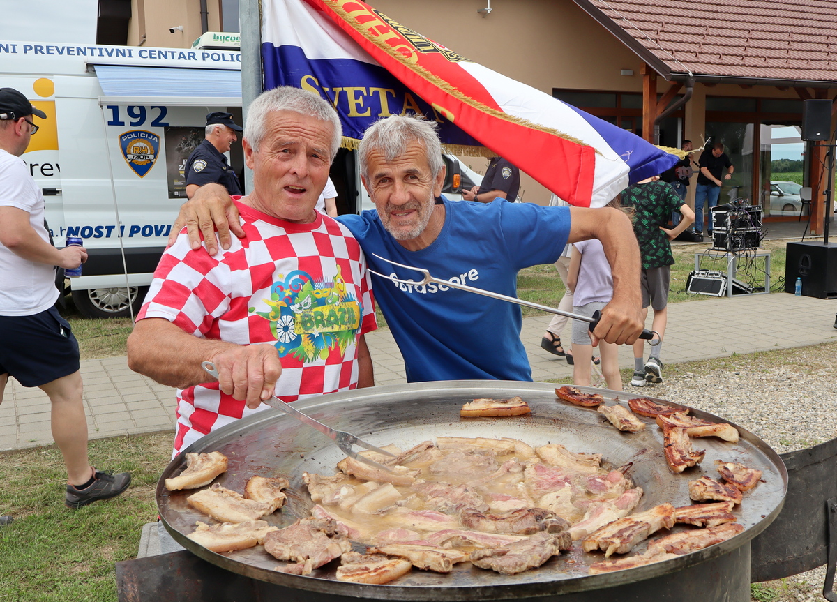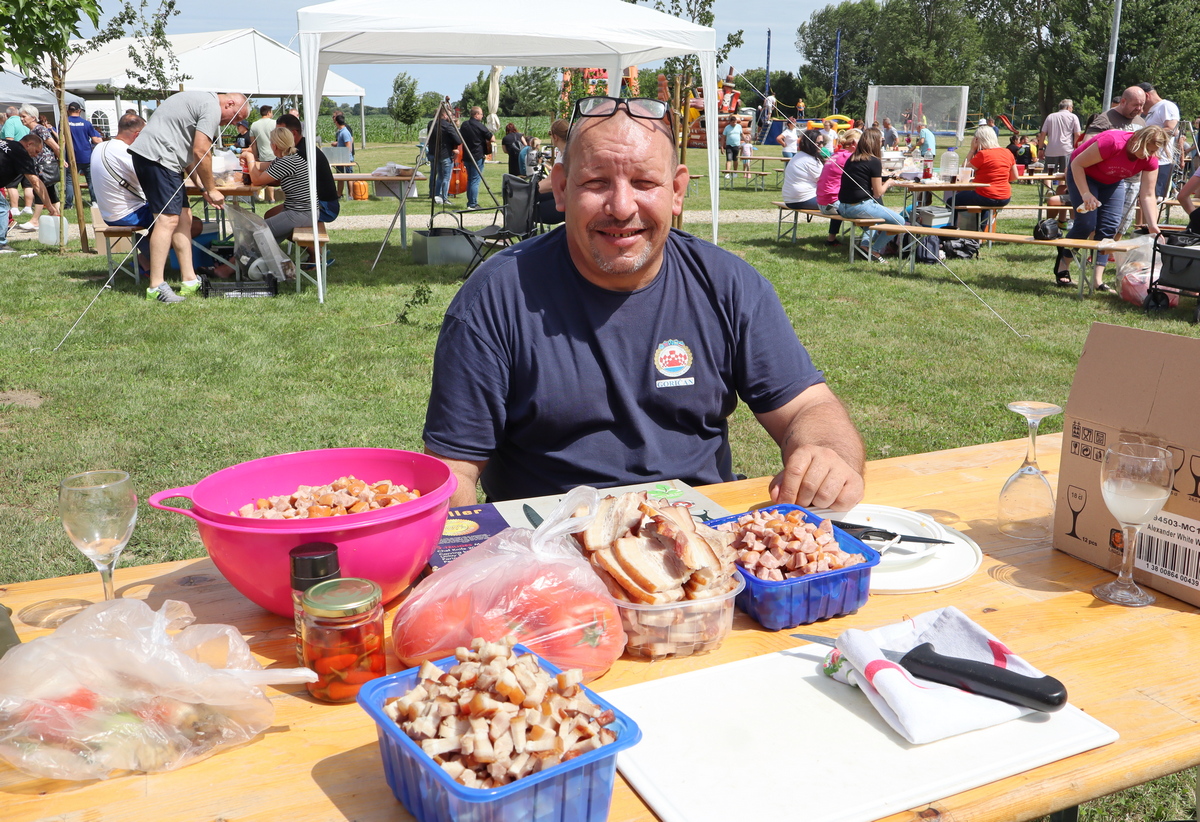 Tako se tu mogu naći, primjerice, juha od vrganja, pohani patuljasti somići, pečeni šnicli, dinstano meso s povrćem, pohana piletina i krumpir salata, meso s roštilja, hot dog, špageti bolonjez i dr. Ovom veselom druženju priključio se i načelnik Općine Goričan Emanuel Sinković, koji u ime tima općine kuha fiš paprikaš.