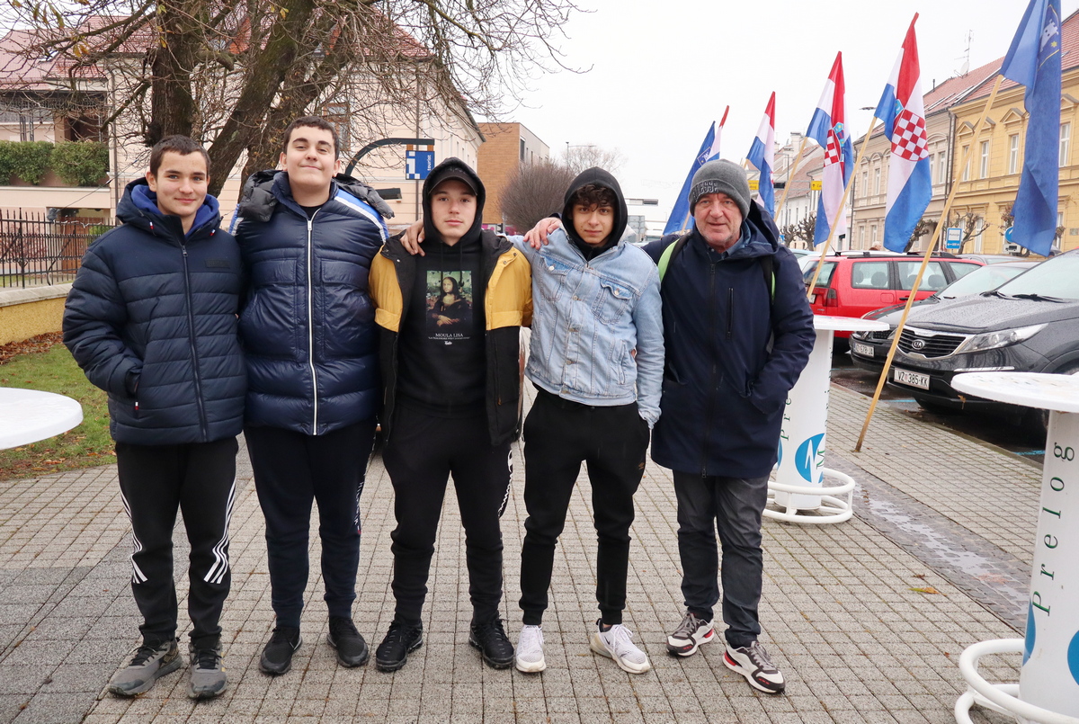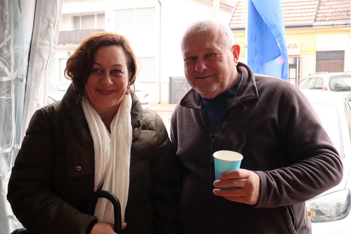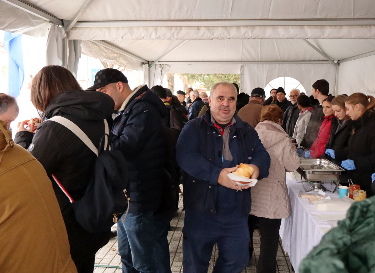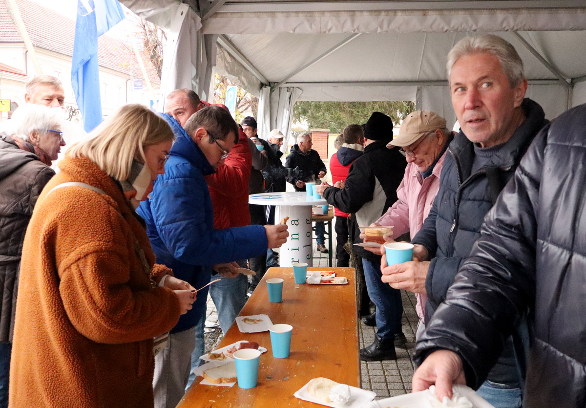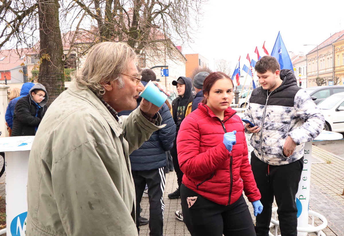 Mnogobrojni građani navratili su na druženje, a pod šatorom su ih čekali kobasice i kuhano vino koje su pripremili marljivi učenici Srednje škole Prelog.