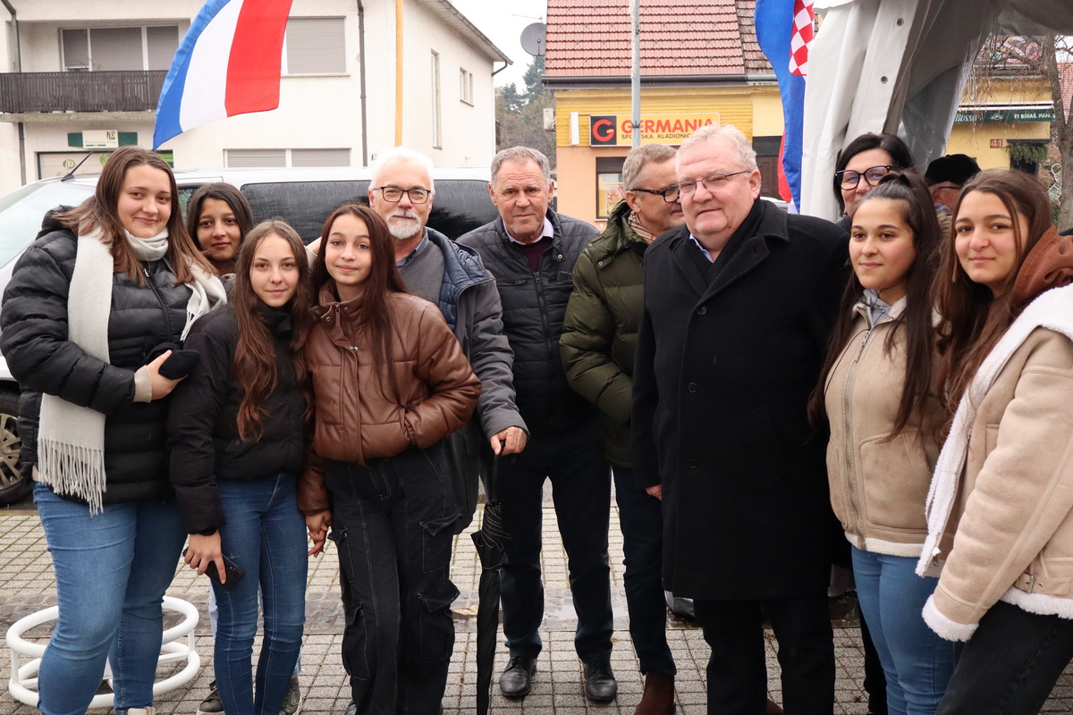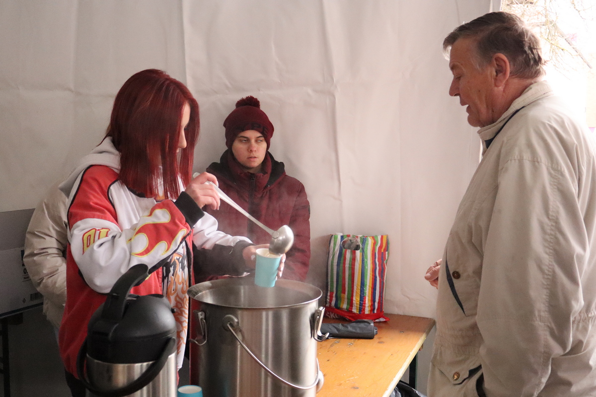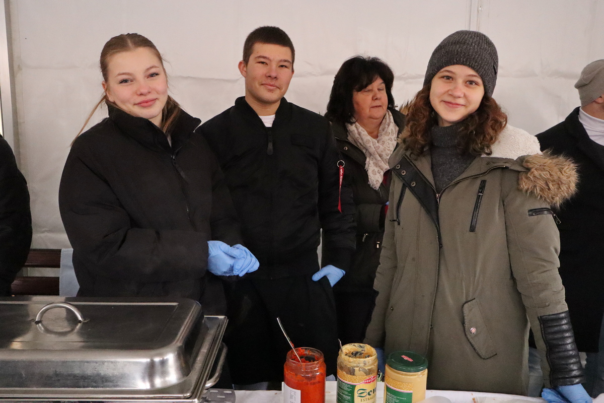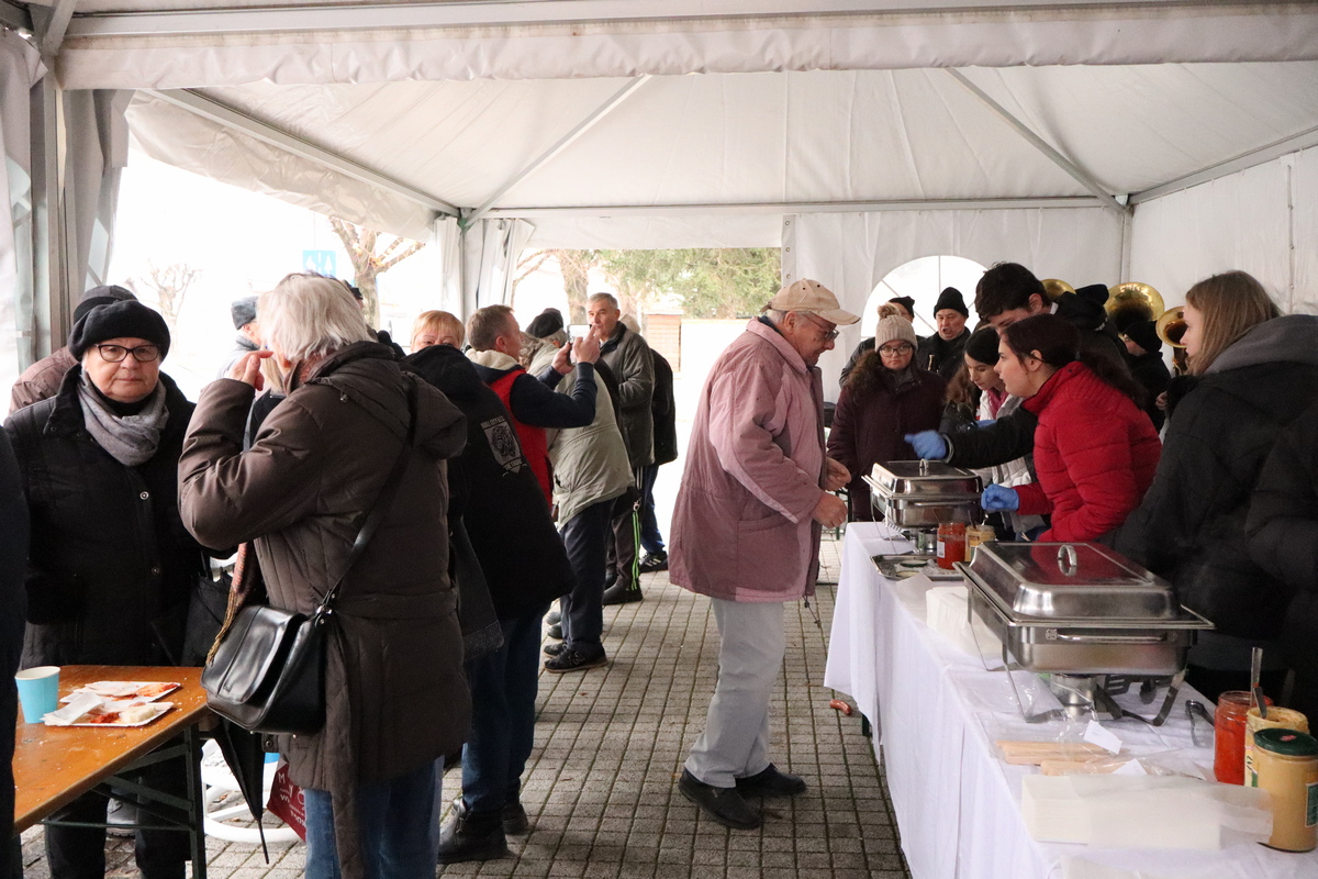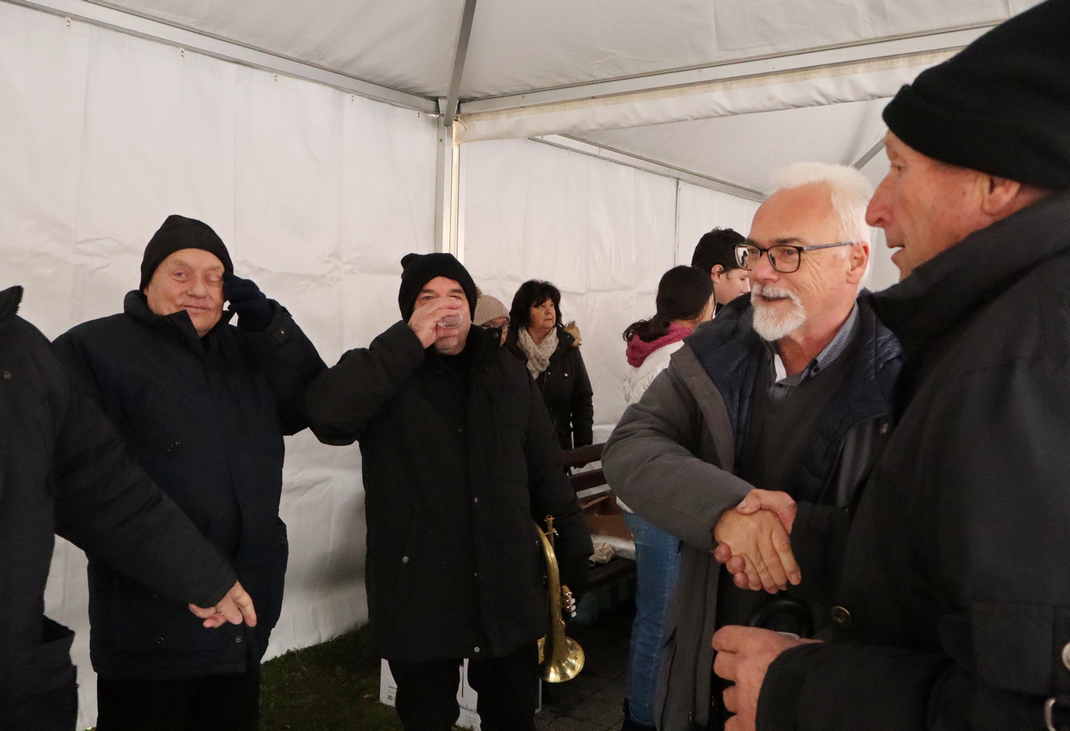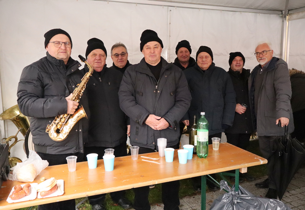 Mnogobrojni građani navratili su na druženje, a pod šatorom su ih čekali kobasice i kuhano vino koje su pripremili marljivi učenici Srednje škole Prelog.