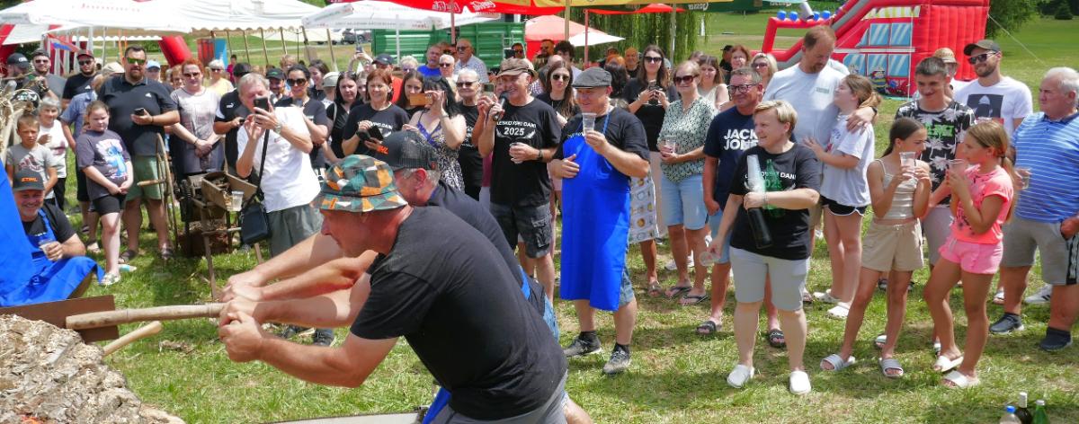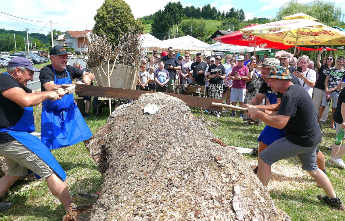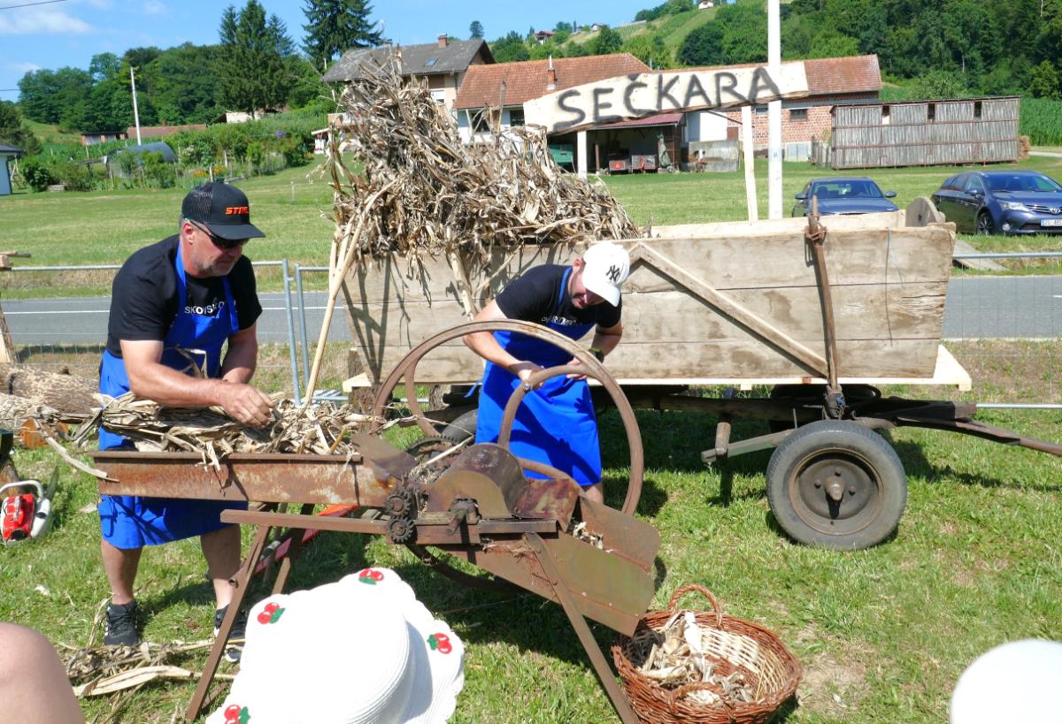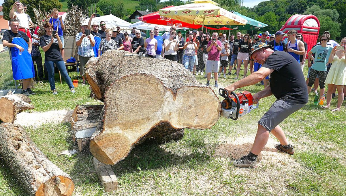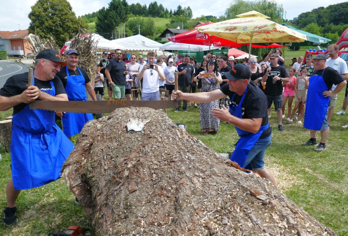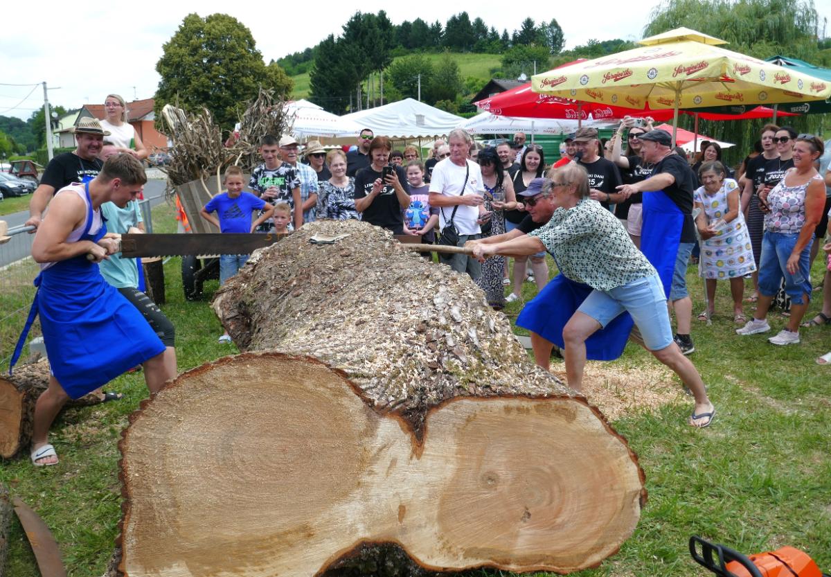 Priređeno je i natjecanje u što bržem okretanju sječkare u kojoj se usitnjavalo kurozije za nastel kravama u štali. Posebno je bilo aktrativno natjecanje u piljenju debelog trupca, prvo ručnim pilama, u kojem su sudjelovale žene kao i muške snage svih uzrasta, a onda i motornim “štilovkama”. Natjecatelje su zdušno bodrili brojni mještani, ali i gosti iz drugih dijelova Međimurja i susjedne Slovenije.