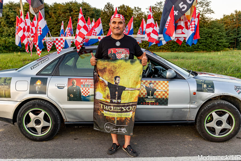 Naime, već po četvrti puta on ukrašava svoj Audi 80 s mnoštvo Hrvatskih zastava, ali ovaj put i s obilježjima ovog jedinstvenog koncerta kao i s obilježjima samog pjevača Thompsona.