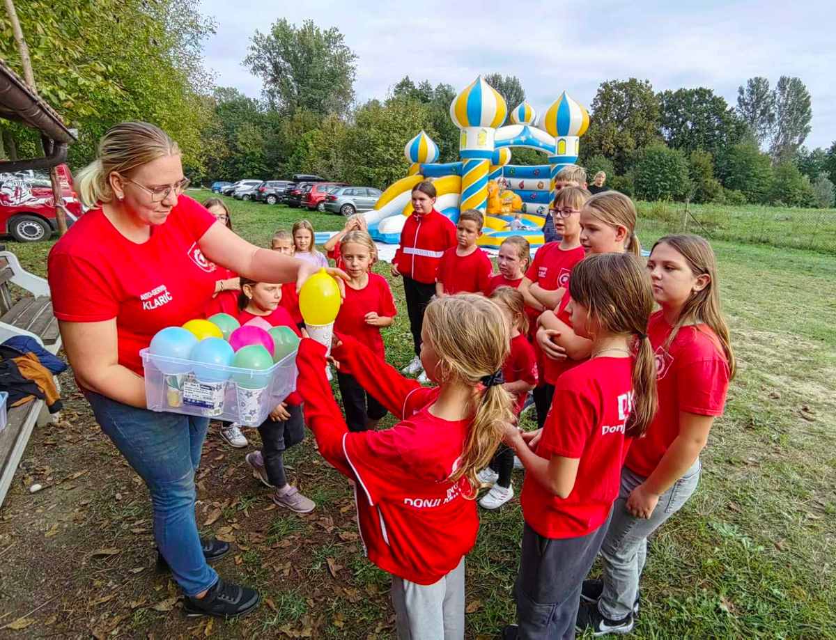 Mali vatrogasci uživali su i u igri na napuhancu, a posebno su ih razveselili pokloni koje im je pripremila i podijelila njihova voditeljica Ivana Igrec – čaše s balonoma, slatkišima, privjeskom u obliku vatrogasnog aparata i motivirajućim porukama, a svako je dijete dobilo različitu poruku.