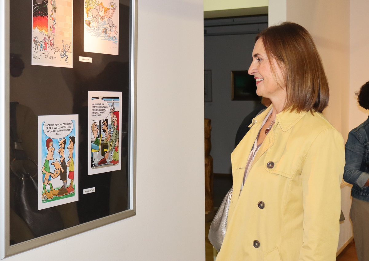– Karikatura je namjerno pretjeran prikaz karakterističnih svojstva osoba, pojava, događaja i stvari. Često je sredstvo društvene, političke ili moralne kritike. Rijetka je u slikarstvu i kiparstvu, a njezin medij je crtež… – rekla je uvodno ravnateljica preloškog muzeja Iva Kožnjak i dodala kako je za razvoj karikature osobito je važno osnivanje humorističnih časopisa.