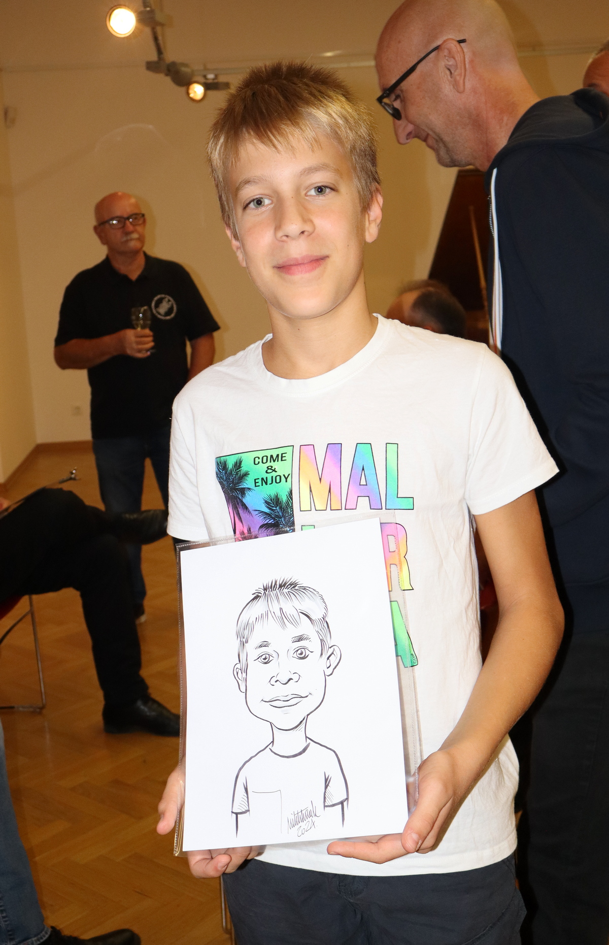 Nakon otvorenja i dvije prekrasne izvedbe na klaviru učenice Srednje škole Prelog Eve Petković, posjetitelji su sa zanimanjem razgledali izložene radove, a onda su najhrabriji prvi sjeli pred karikaturiste Nika Titanika, Davorina Trgovčevića (dopredsjednika HDK-a) te našeg, najpoznatijeg međimurskog karikaturista, Damira Novaka, koji su strpljivo crtali brzopotezne portretne karikature posjetitelja, koji su ih, oduševljeni, ponijeli kući. Odličnih karikatura, kao i smijeha, nije nedostajalo!