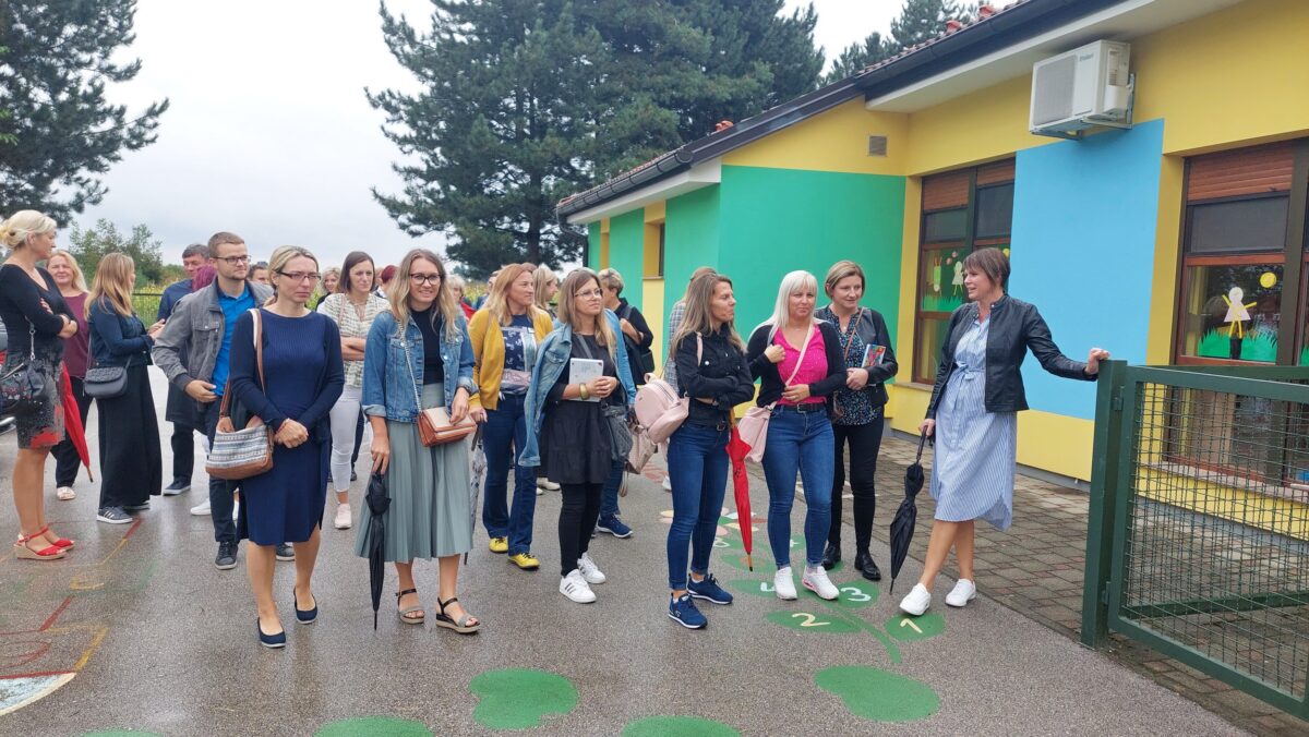 U vrtiću ih je dočekao nastup mališana koji su im otpjevali svoju himnu „Kockavica“, dok ih je ravnateljica vrtića Karolina Jeđut Tilošanec upoznala s radom vrtića i naglasila da trenutno imaju 60 djece iz Svete Marije i Donjeg Mihaljevca, no kapacitet je premali za sve potrebe te se nadaju nadogradnji.