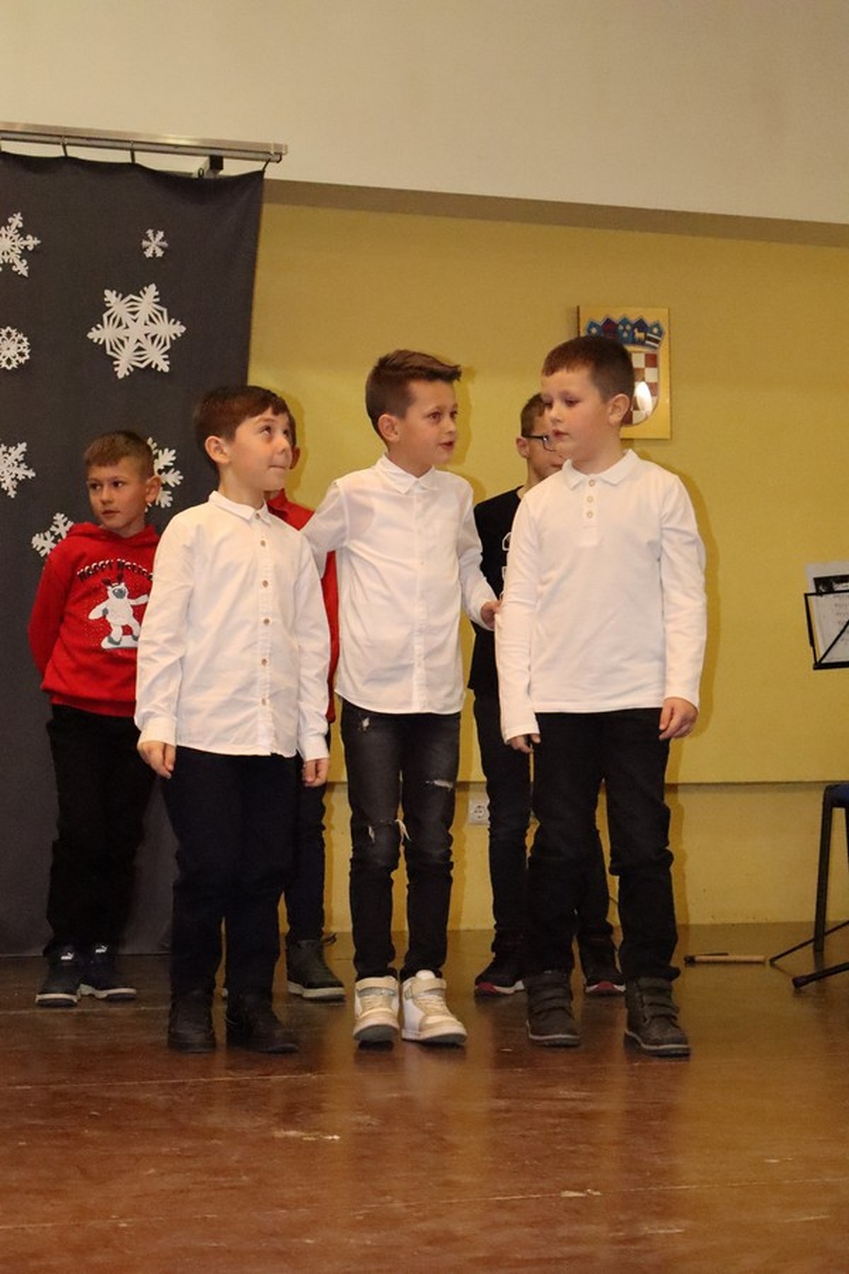Na kraju priredbe ravnateljica je zahvalila svima na dolasku, pohvalila učenike koji su bili odlični i uveli u blagdansko raspoloženje te zahvalila učiteljima koji su uložili trud u rad sa učenicima u pripremi božićne priredbe. Kao nagradu njima zamolila je još jedan pljesak. Svim prisutnima čestitala je Božić i novu godinu.