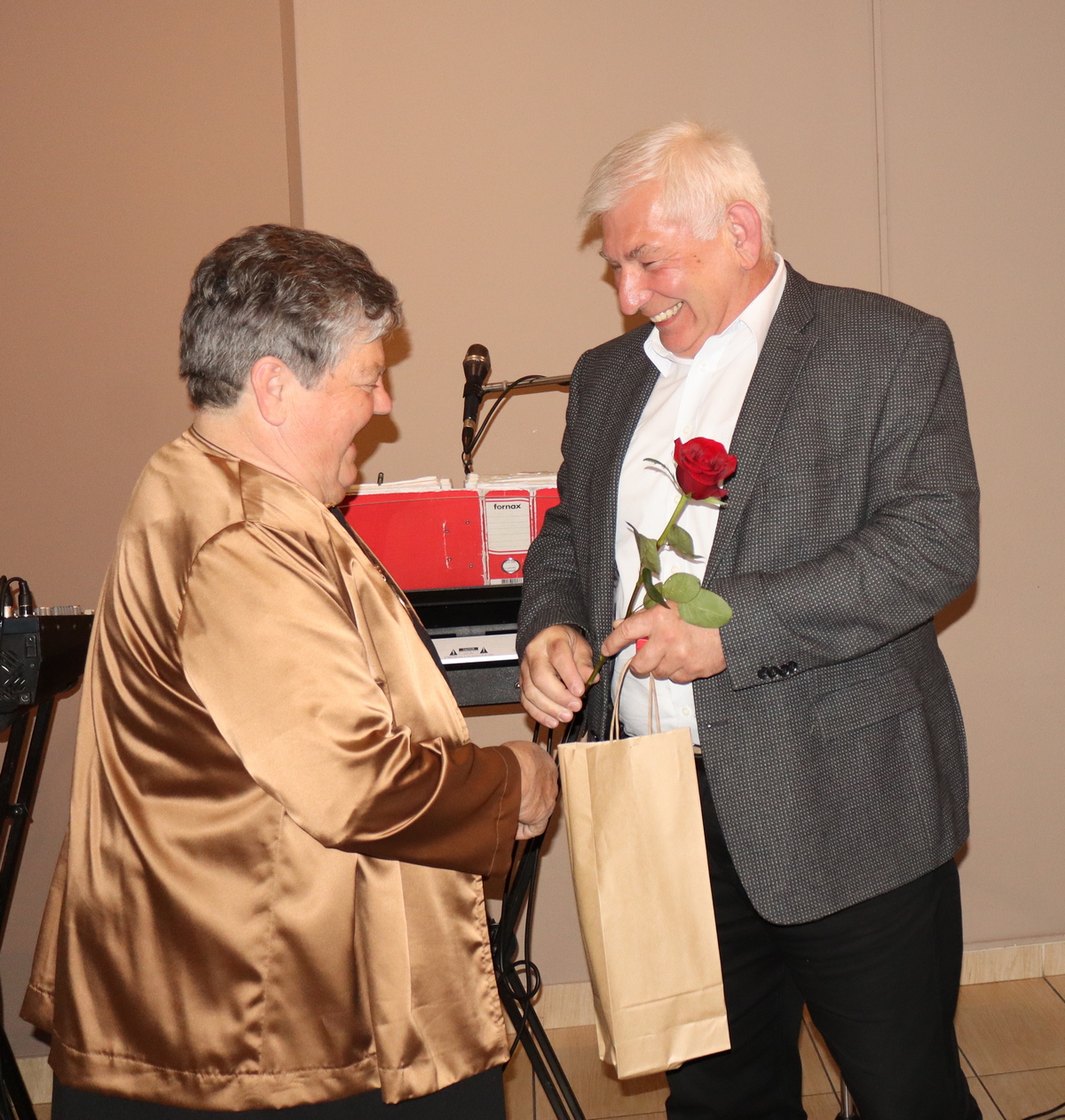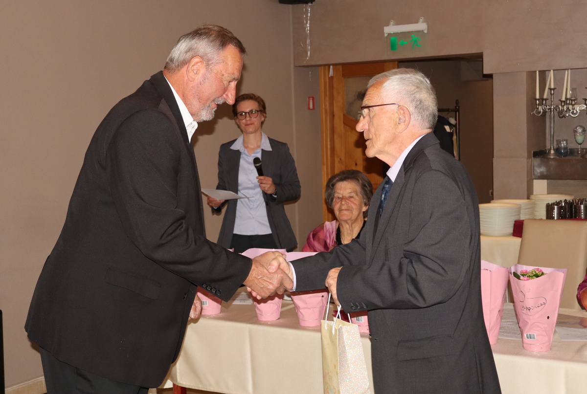Slavljenicima su godišnjice braka čestitali, uz darivanje prigodnim poklonima i cvijećem, predsjednik Udruge umirovljenika Prelog Franjo Novak i predsjednik Gradskog vijeća Grada Preloga Đuro Ujlaki. Svi su im oni, kao i gradonačelnik Grada Preloga Ljubomir Kolarek te potpredsjednika Skupštine Međimurske županije Ivica Baksa u ime Međimurske županije, srdačno čestitali. Kolarek je istaknuo kako život nije pjesma i izgurati sve u dvoje, toliko godina, je velika stvar.