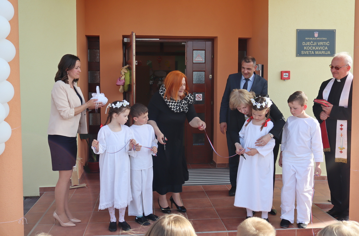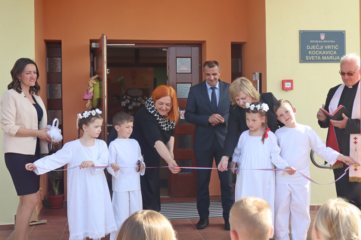 Program otvorenja vodila je Željka Švenda, a svečanost su uveličali Tena Panić, tamburaši KUD-a Ivan Mustač Kantor Sveta Marija te djeca, mali polaznici Dječjeg vrtića „Kockavica“. Nakon službenog dijela i govora, djeca Erik Herman, Bruno Vadlja, Kaja Mandlin i Eva Kvakan, su zajedno s ravnateljicom vrtića Jambrešić, načelnicom Slamek i županom Posavcem, svečano prerezala vrpcu te je vrtić blagoslovio župnik Svete Marije vlč. Mirko Pilaj.