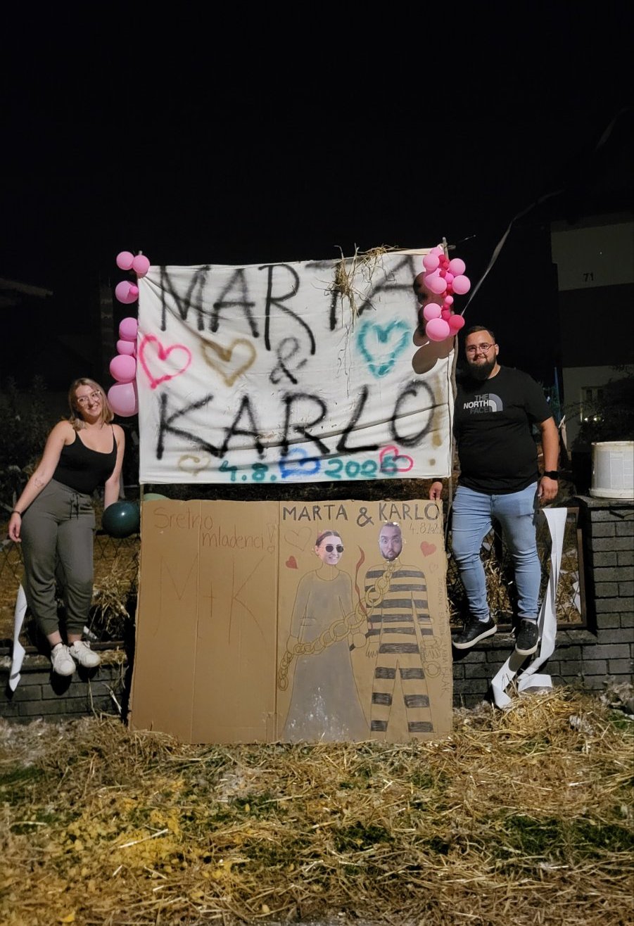 Marta i Karlo upoznali su se u autobusu na putu za Sloveniju za vrijeme fašnika. Ona je bila u ekipi s Čapljama, a on je, na braču, pratio podturenske maškare svirkom. Ostalo je, kako se kaže, povijest!