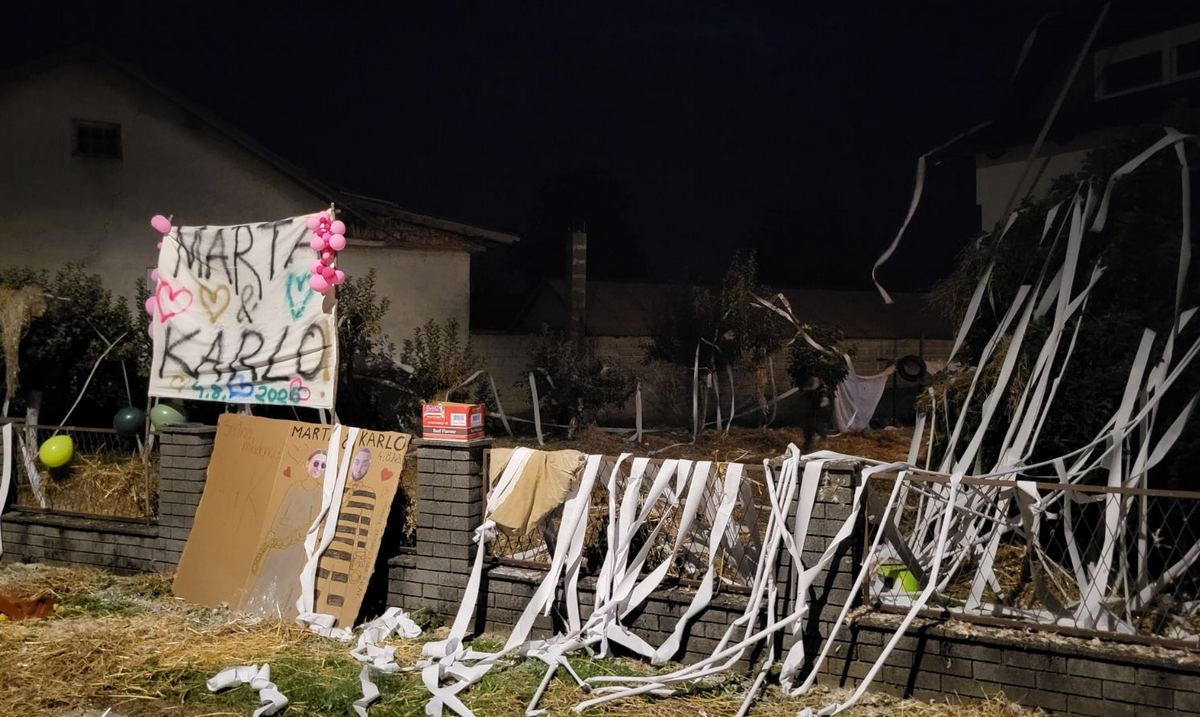 Dvorišta budućih mladenaca „zasjala“ su puna sjena, računa u trakama, WC papira, perja, stiropora, starih guma, čepova pivskih flaša itd. Nakon potepanja, kod Marte u Podturnu nije izostala ni vesela fešta uz živu glazbu do kasnih noćnih sati.