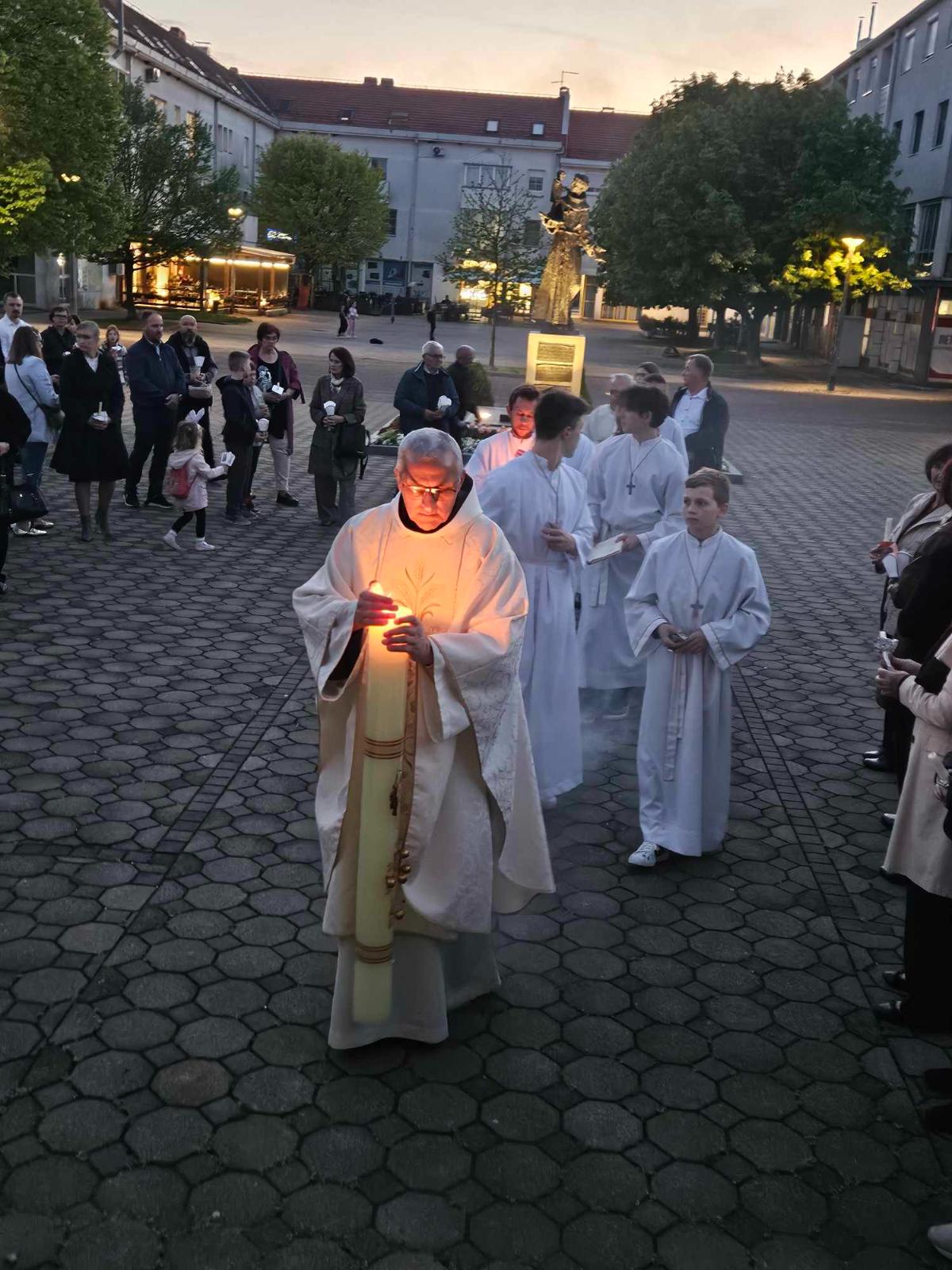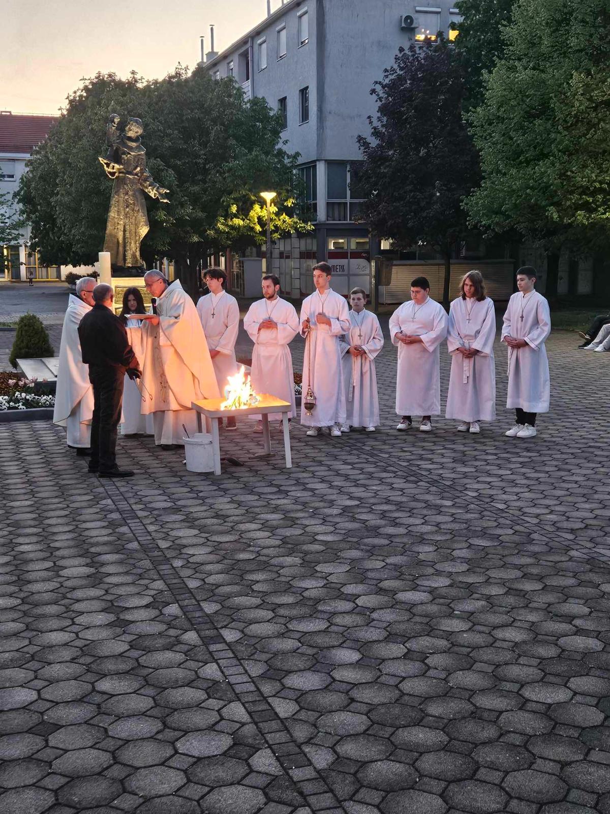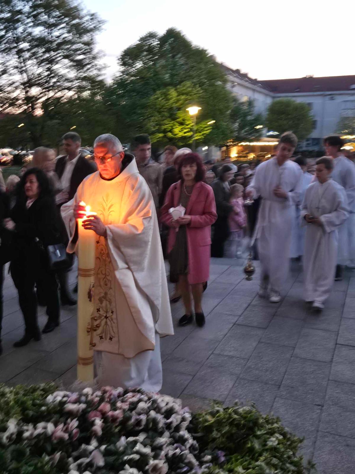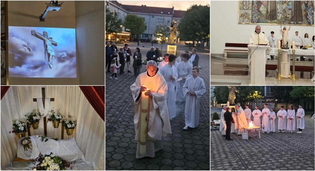 Vazmeno bdjenje započelo je ispred crkve blagoslovom ognja u 20 sati i paljenjem Uskrsne svijeće, a nastavljeno je obredom Velike subote.