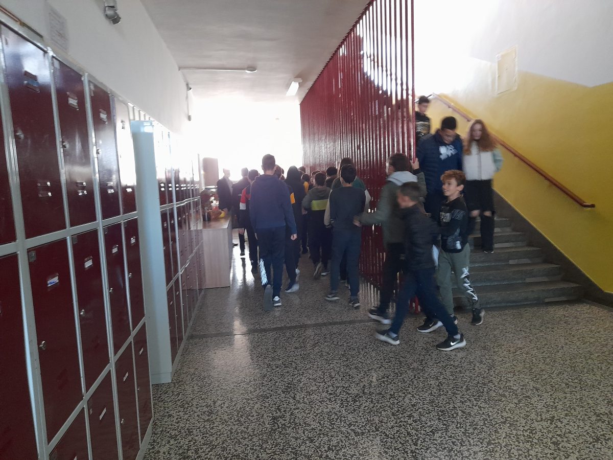 U trenutku potresa učenici i djelatnici škole sakrili su se ispod stolova, štokova vrata ili uz nosive zidove te su mirno pričekali prestanak potresa, a nakon toga uslijedila je evakuacija. U što kraćem roku djelatnici škole evakuirali su učenike iz prostora Osnovne škole, te nakon brojanja i provjere brojnog stanja učenika i djelatnika utvrđuje se da nedostaje šest učenika i jedan djelatnik Osnovne škole. Vatrogasne snage izvršile su unutarnju navalu, krenule u gašenje požara i pronašle šest učenika škole, iznijele ih van i predale djelatnicima zavoda za Hitnu medicinu koji su izvršili medicinsku trijažu. Definirana je zelena trijažna kategorija svih šest učenika.
