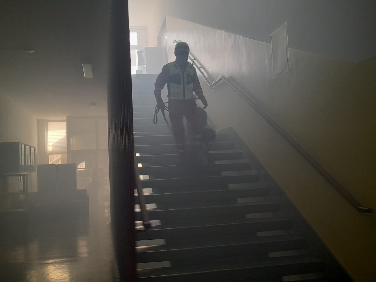 HGSS Stanica Čakovec u potrazi za sedmom osobom, izvršila je pretragu objekta s potražnim psom, pronašli su tu sedmu osobu (djelatnika škole) i zbog nemogućnosti izlaska iz objekta spustile su ju „Tirolskom prečom“. Djelatnici zavoda za Hitnu medicinu nakon izvršene medicinske trijaže, šest lakše povrijeđenih osoba predaju ekipi GDCK Čakovec, a sedmoj osobi (crvena trijažna kategorija) zbog težine ozljede odmah su pružili neodgodivu hitnu medicinsku skrb te je izvršen hitan transport u Opću bolnicu Čakovec. Unesrećena osoba imala je ozljedu glave sa sumnjom na moždano krvarenje.
