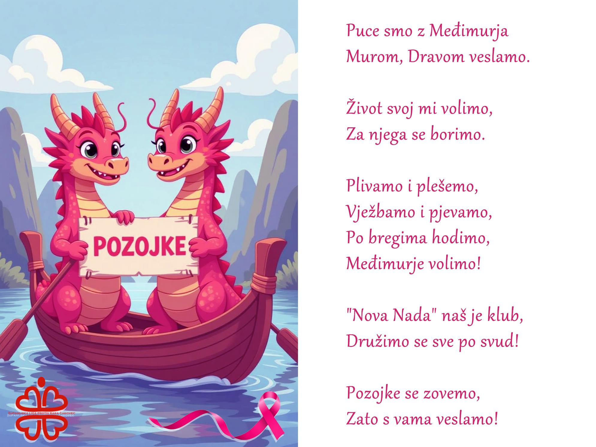 I ove su godine članice Kluba žena operiranih od raka dojke „Nova nada“ sudjelovale na 4. Otvorenom Dragon Boat kupu u Prelogu. Nastupile su revijalno, pod natjecateljskim imenom „Pozojke“, i još jednom pokazale da zajedništvo, snaga i optimizam mogu pobijediti sve prepreke.