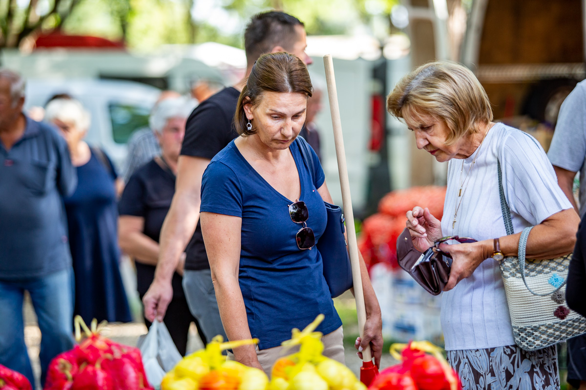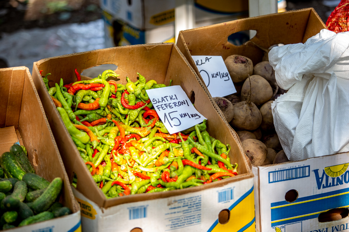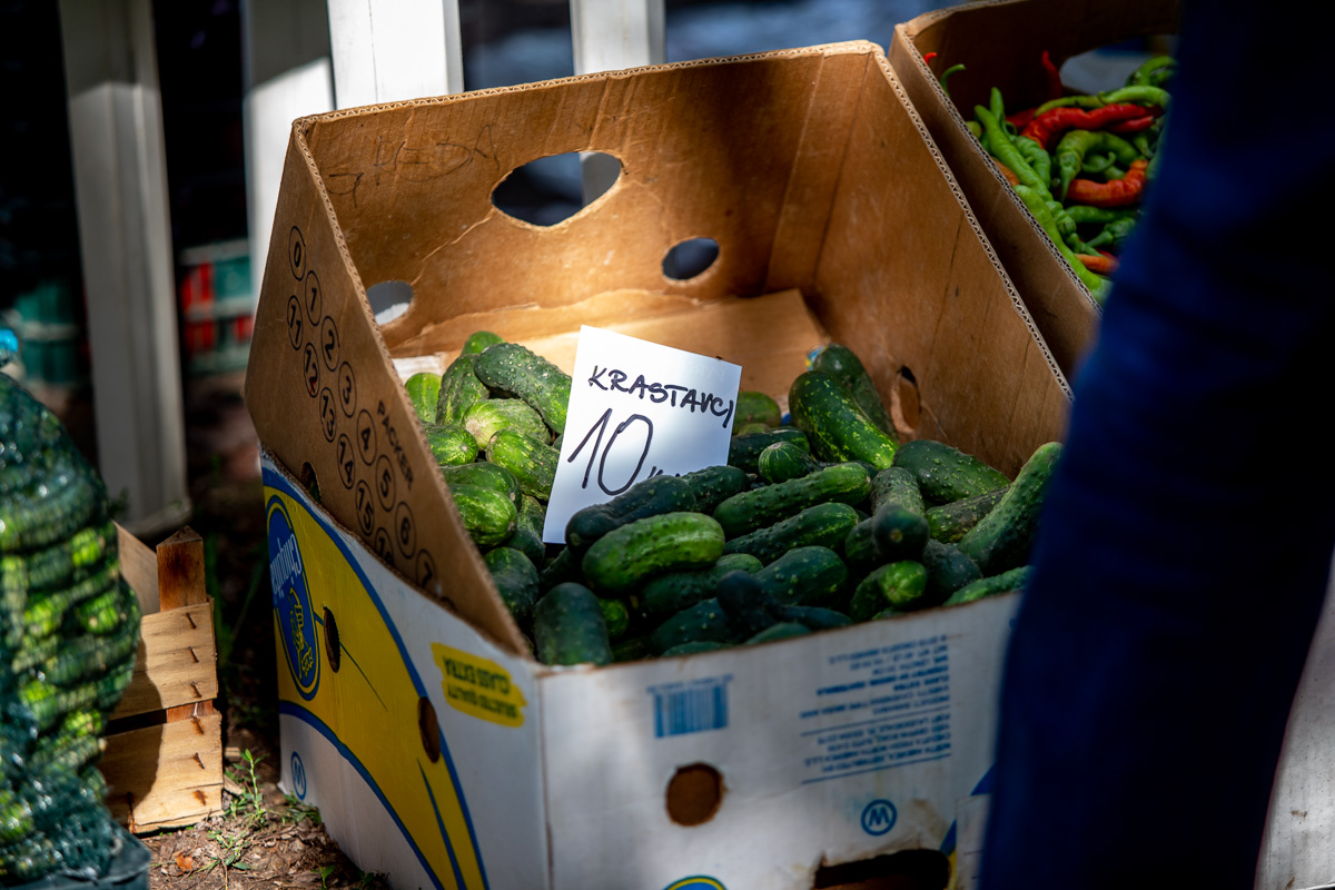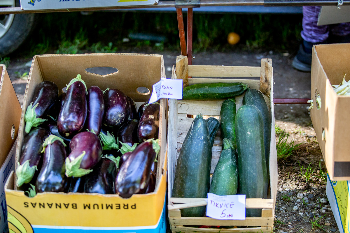 Krastavci, ovisno o veličini, nudili su se od 5 do 20 kuna kilogram. Grah čvrsto drži cijenu: onaj u ljusci prodavao se po 18 kuna kilogram, a onaj očišćeni po 50 kuna kg.