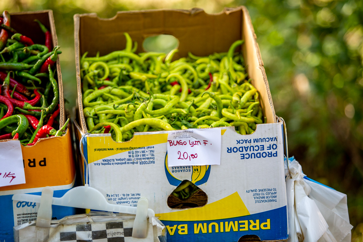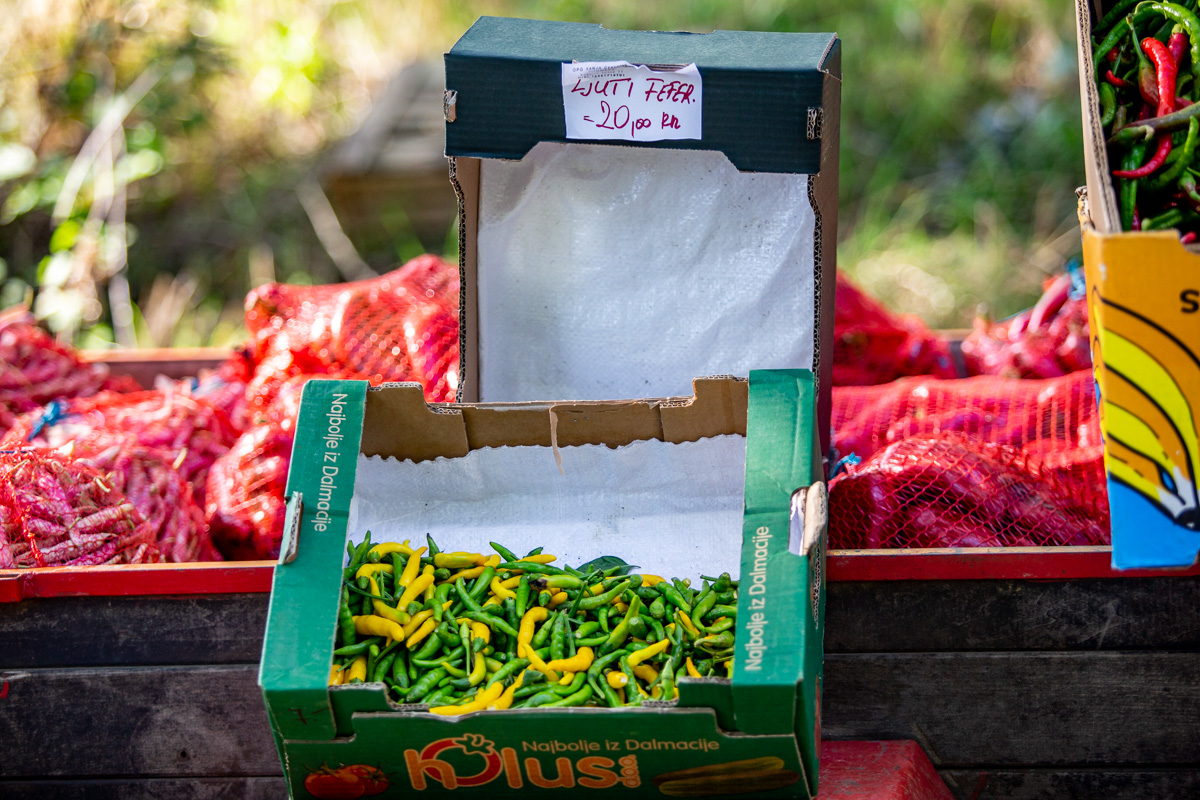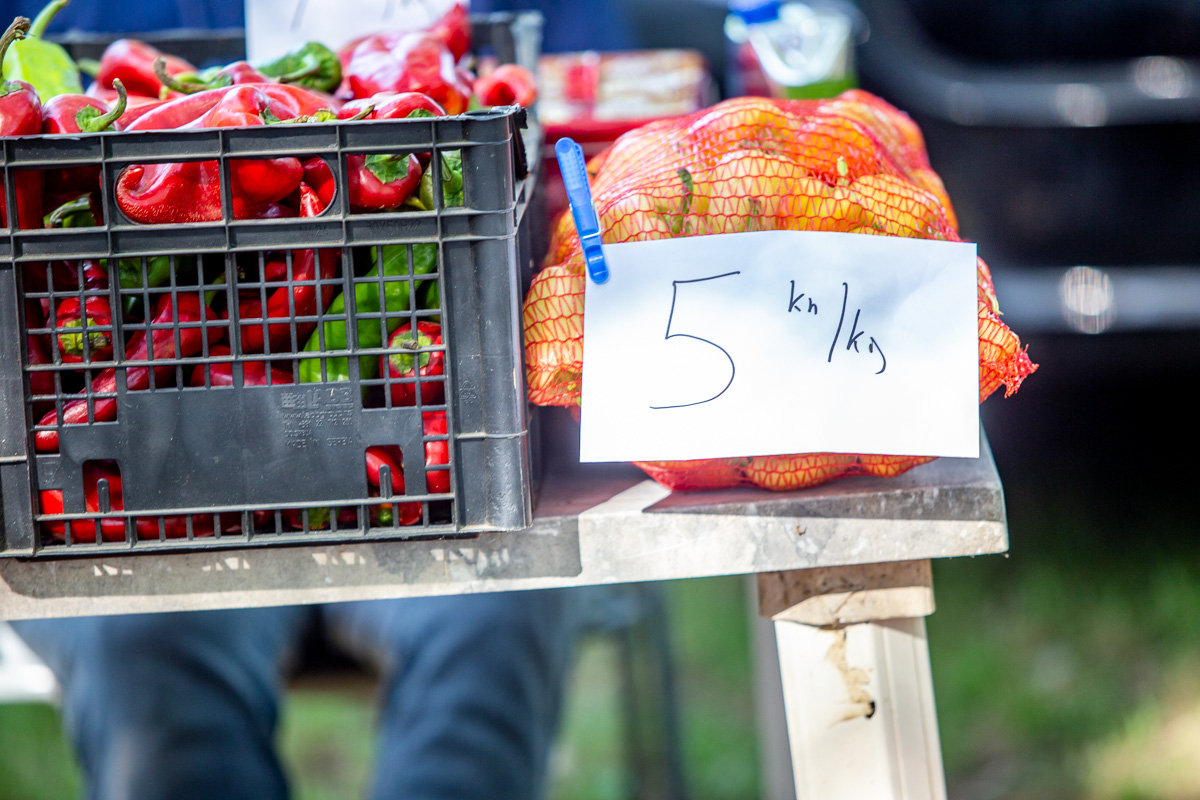 Šampinjoni su bili po 20 kuna kilogram, luk po 4, luk srebrenac po 8, ljuti feferoni po 20, a slatki po 15 kuna kilogram. Paradajz paprika bila je po 7 kuna, a crveni rog po 8 kuna kilogram. Niti za oku u vrećama od 5 kg nisu spuštali cijenu ispd 8 kuna kg.