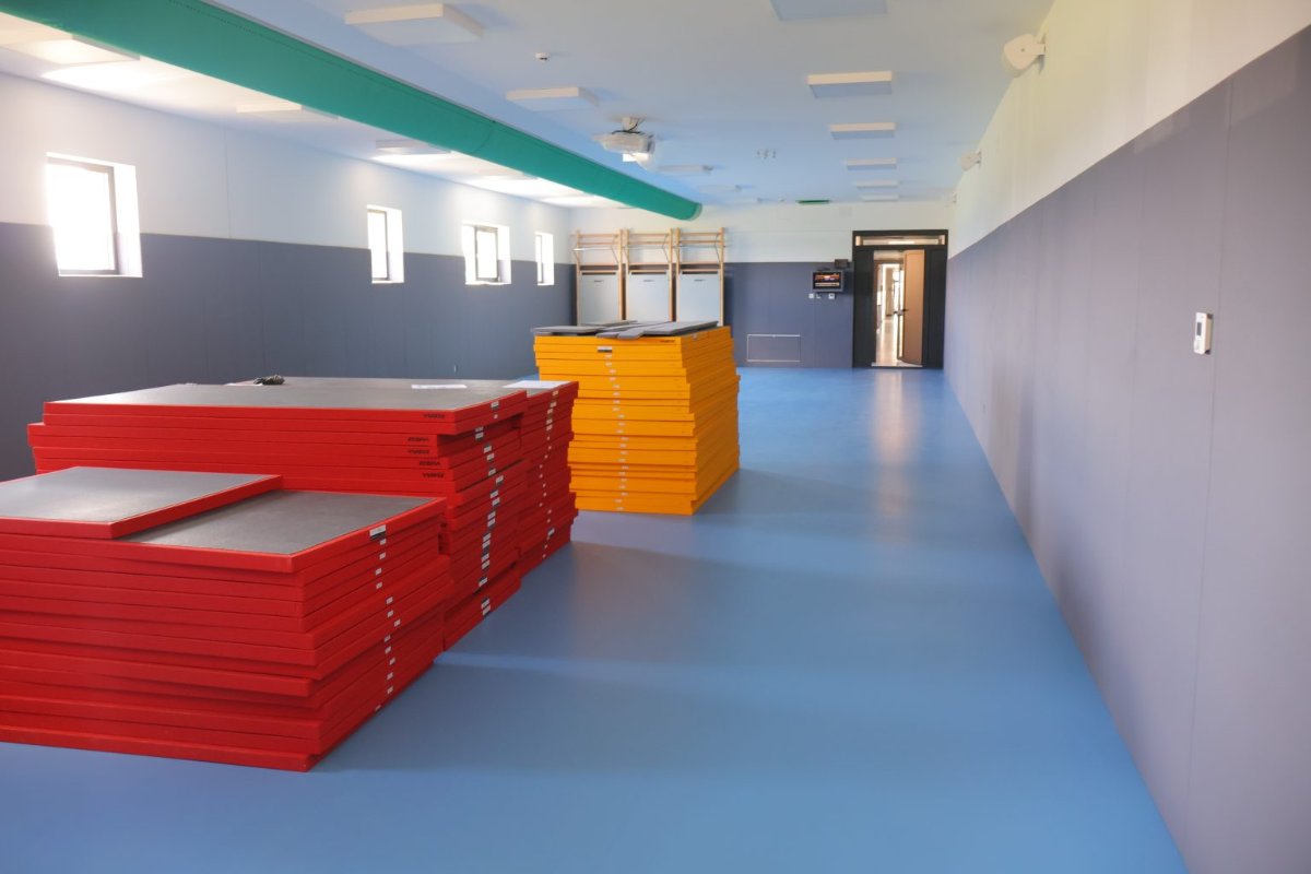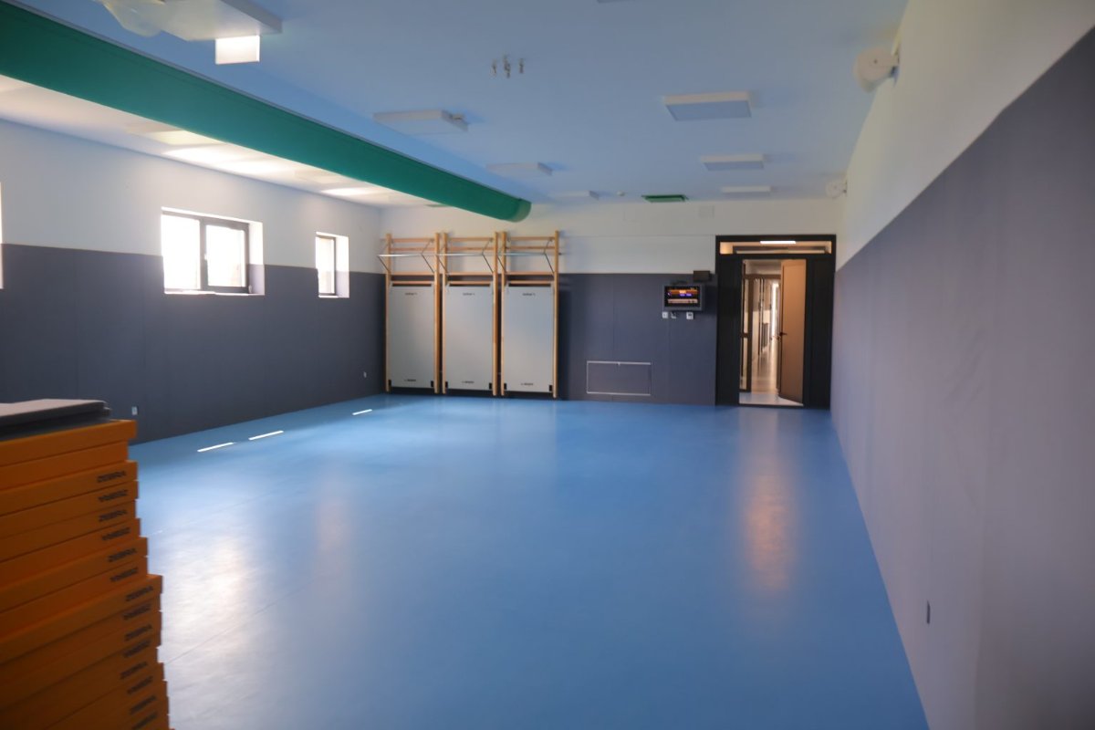 Sa starih 80 m2, povećana je na 176 m2, opremljena je strunjačama, švedskim ljestvama, na stropu ovješenim užima za vježbanje i za penjanje, oblogama od spužve na zidovima, projektorom i ozvučenjem. Osim za treninge, zahvaljujući multimedijalnim mogućnostima, moći će se koristiti i za razne radionice. Na ulazu u dvoranu postojeći hodnik pregrađen je u predprostor za ulazak u kojem se nalazi inventar za odlaganje obuće i sportskih rekvizita te ormarić za upravljanje multimedijom.