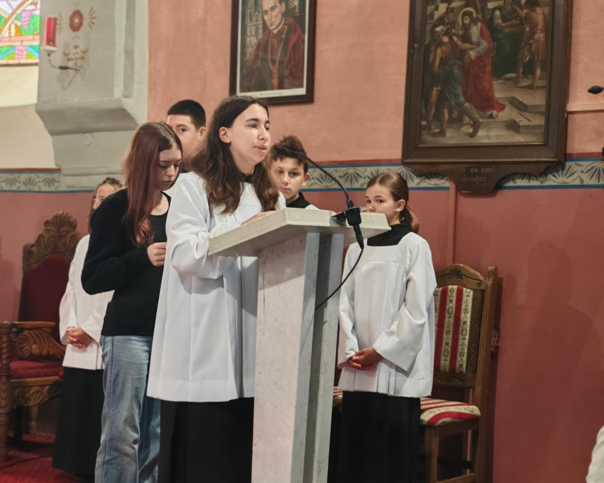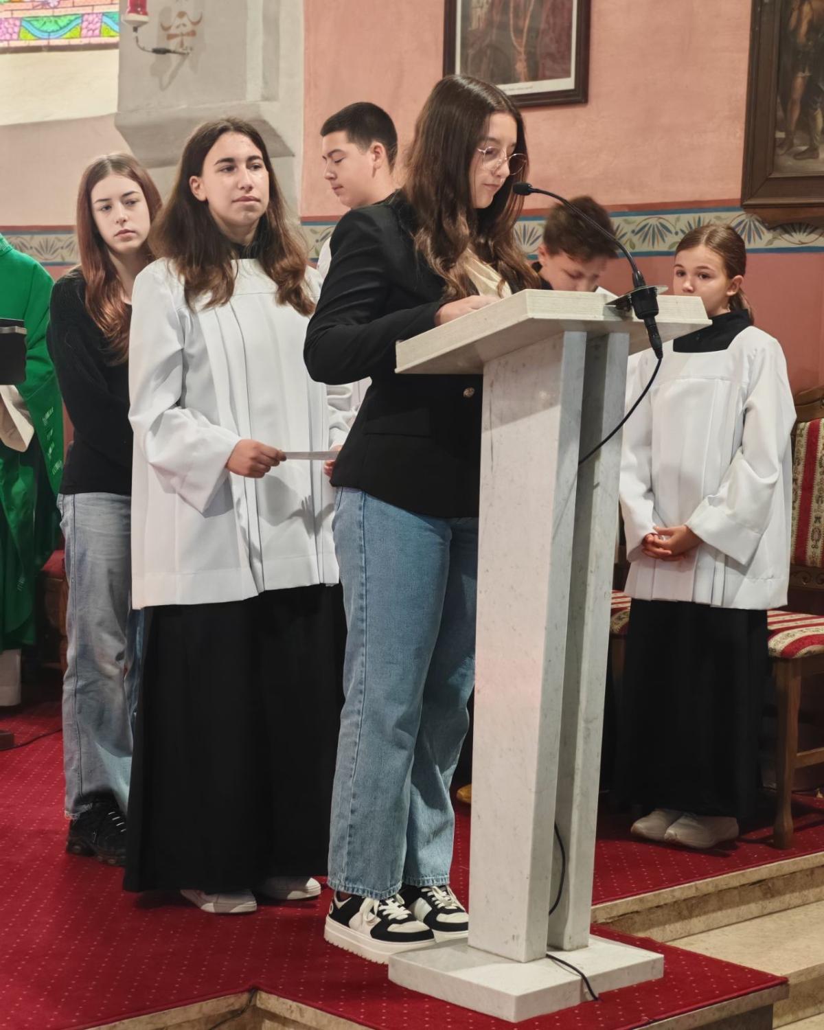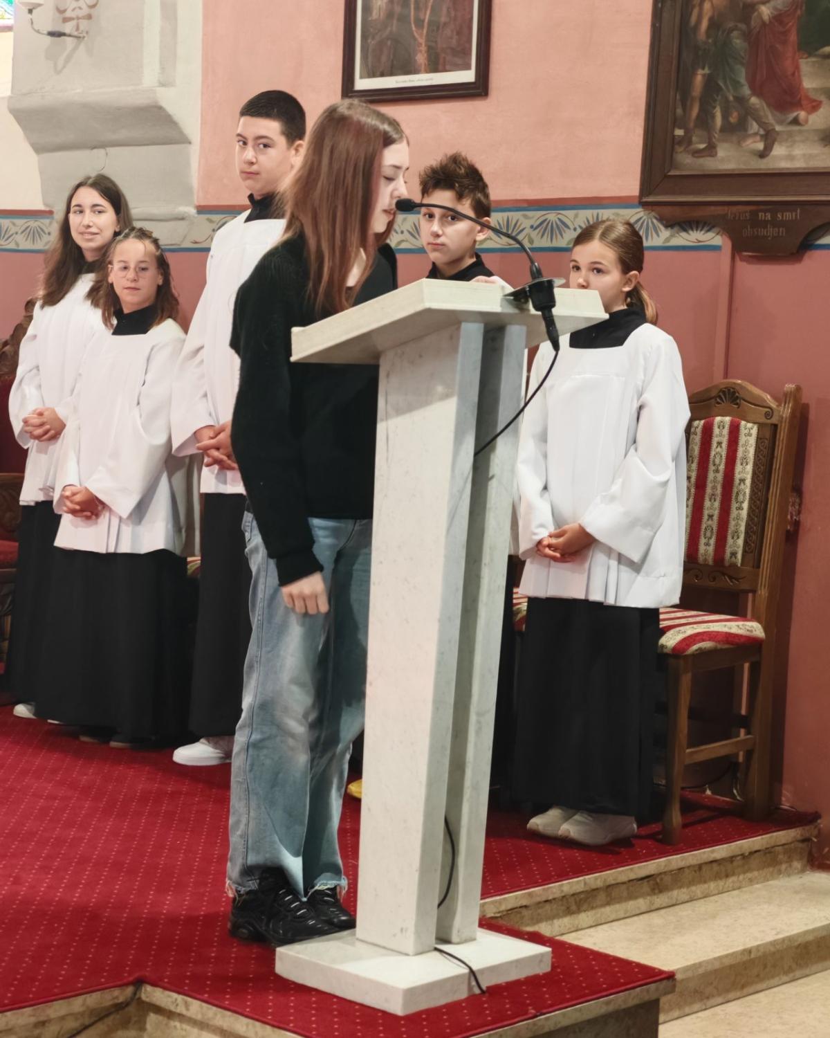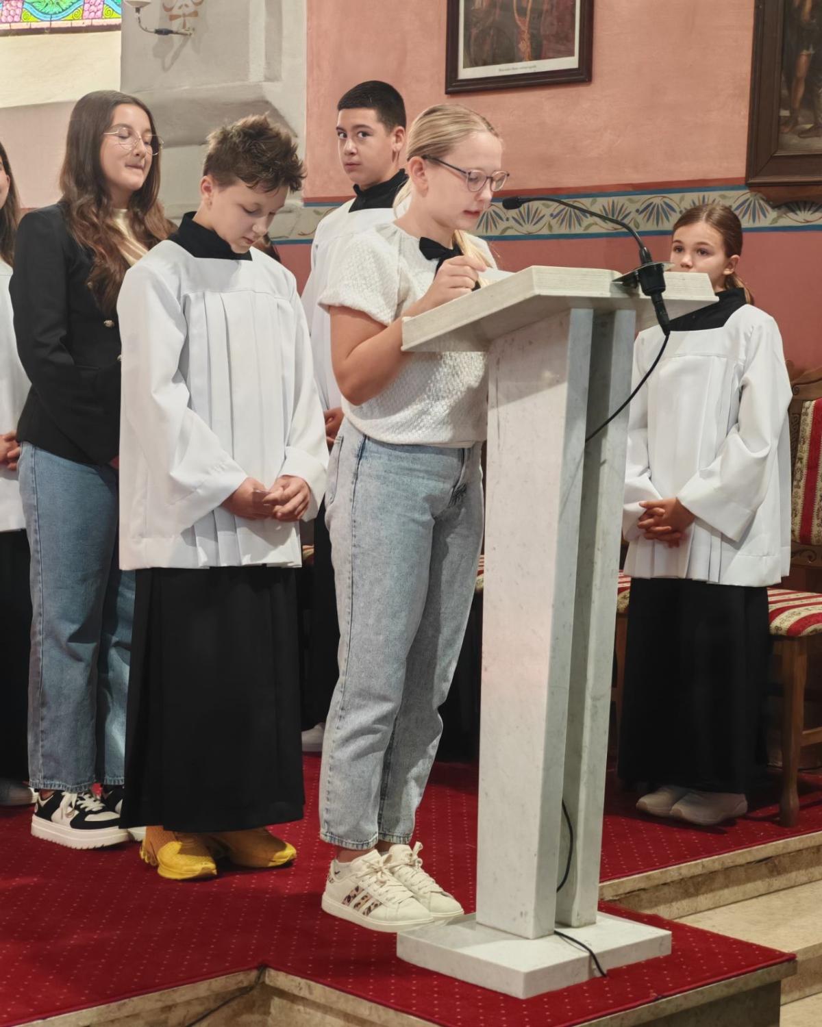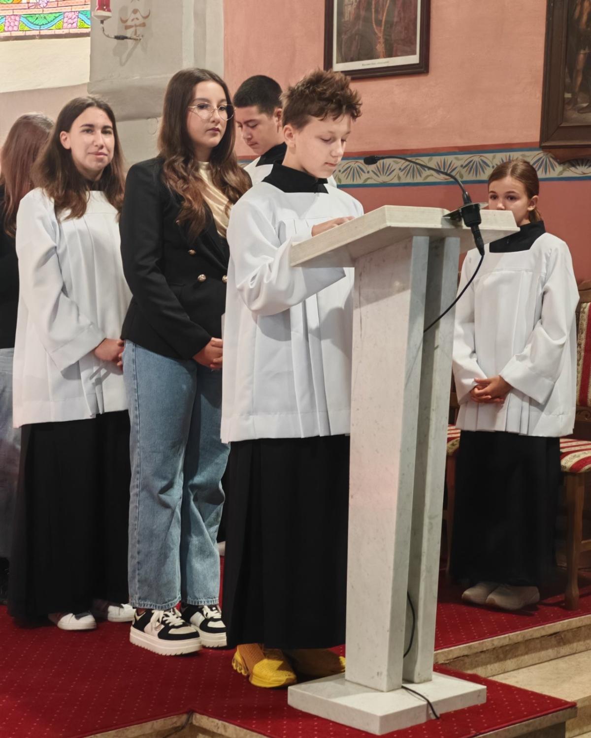 Posebnu je riječ uputio djeci, učiteljima, vjeroučiteljima i mladima: „Djeco, vi ste naši najmlađi učitelji vjere – učite nas jednostavnosti, povjerenju i radosti. Učitelji i vjeroučitelji, možda često radite u tišini, ali u Božjim očima nijedna riječ ljubavi nije izgubljena. A vi, dragi mladi, deset godina pjesme nije samo deset godina glazbe, nego deset godina služenja i svjedočenja. Župa i dalje računa na vas – kao glas nade i svježine u svemu što činimo.“