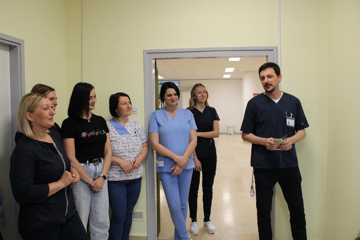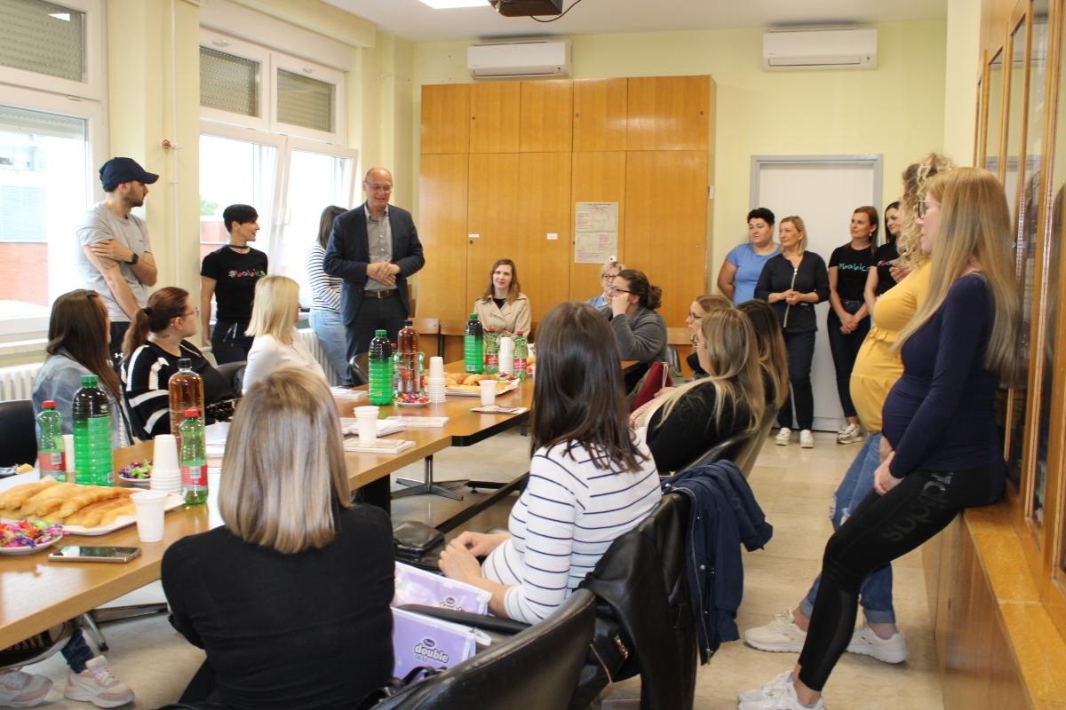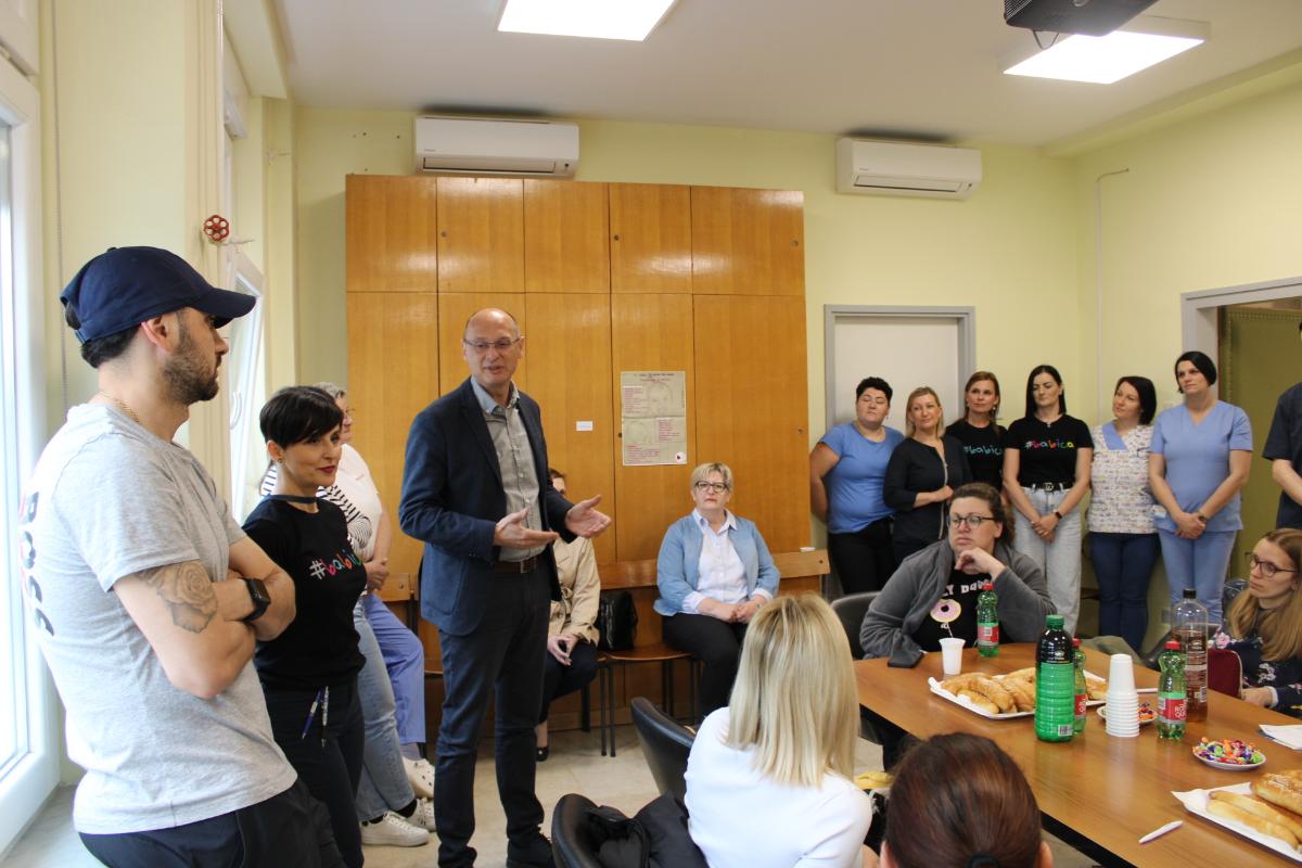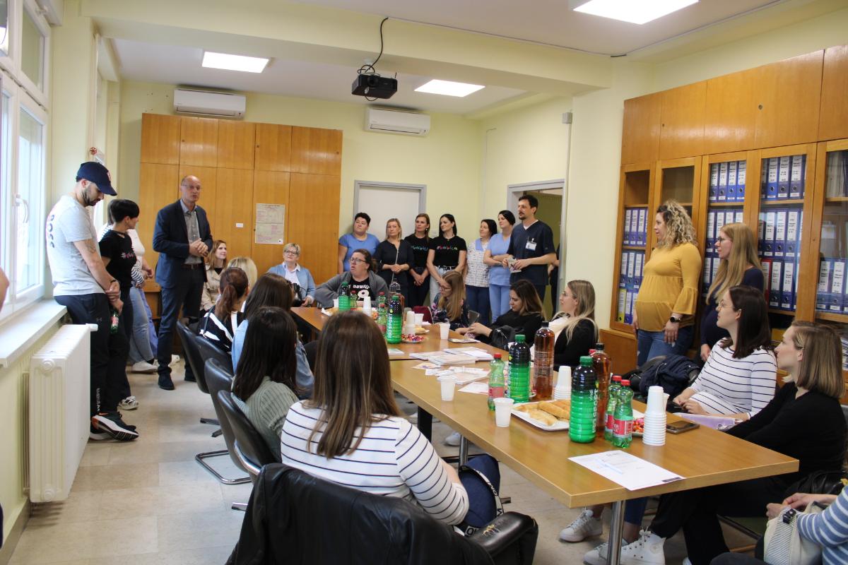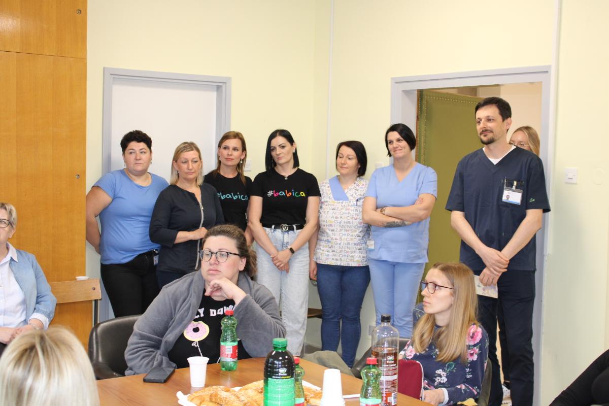 U znak zahvalnosti i priznanja, posjetiteljice su na Odjelu rodilišta s rađaonicom i patologijom trudnoće pozdravili ravnatelj bolnice dipl. iur. Nikola Hren te pomoćnik za sestrinstvo Ivan Bacinger, mag. med. techn. Pridružile su im se i pomoćnica za kvalitetu Kristina Kamenar Toplek, mag. admin. sanit., voditeljica Odjela rodilišta dr. med. Damira Reich, spec. ginekologije i opstetricije, glavna primalja odjela Karmen Cecarko, mag. obs., te voditeljica Odjela neonatologije dr. med. Bernarda Medlobi Vinković, spec. pedijatrije, subspec. neonatologije.