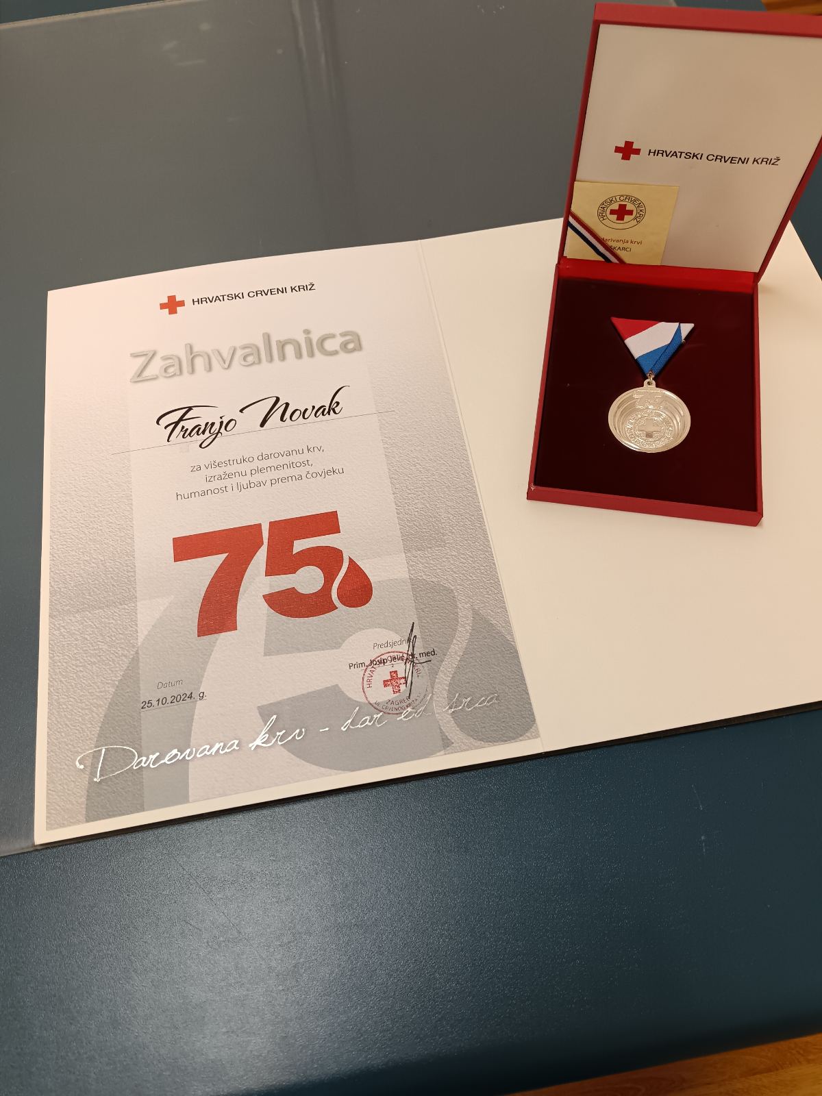 Krajem listopada na Dan dobrovoljnih darivatelja krvi je 66-godišnji Franjo Novak iz Pušćina primio srebrno priznanje Hrvatskog Crvenog križa za 75 davanja dragocjene tekućine.