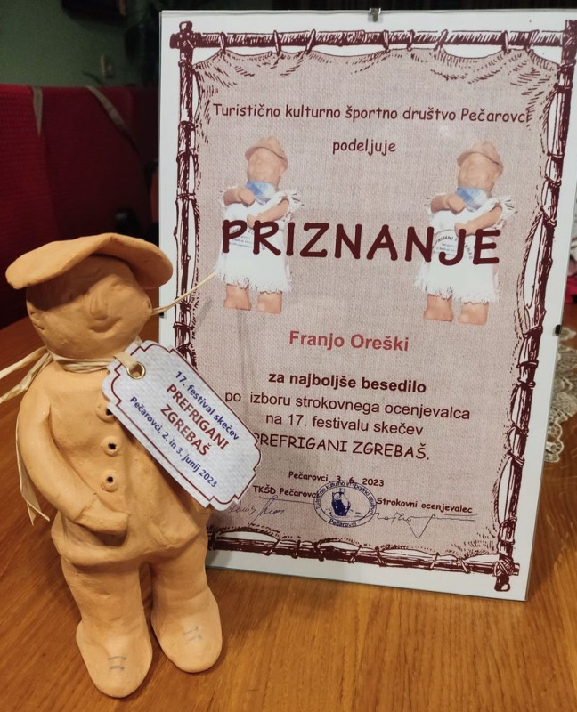 Nagradu za najbolji dramski tekst na susretu kazališnih amatera u konkurenciji slovenskih, međimurskih, krapinsko- zagorskih i varaždinskih autora je po mišljenju Rajka Stupara – poznatog slovenskog kazališnog i filmskog redatelja i stručnjaka osvojio Franjo Oreški iz KUD „Kaštel” Pribislavec. Riječ je o tekstu „ Poštena doktorica”. Osim te nagrade uslijedila je i nominacija za najbolju mušku ulogu Jure na istom susretu.