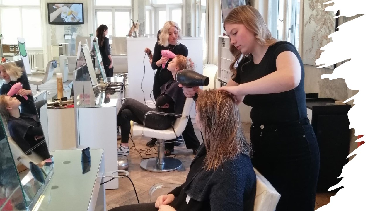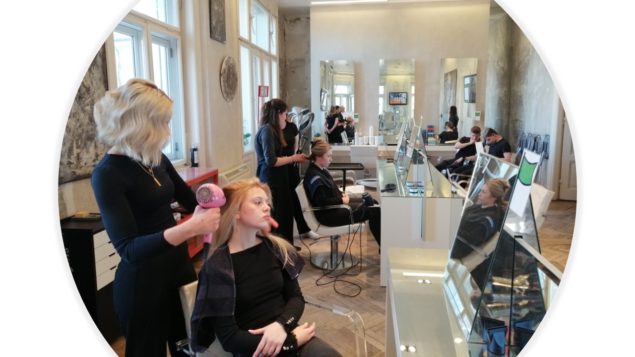 U salonu s 15 zaposlenika koji posjeduje tri zlatna dijamanta profesionalnosti, najveće priznanje za frizerske salone, a koji vodi frizerska obitelj djevojke su imale priliku upoznati novitete talijanske frizerske mode. Učenice su pod vodstvom stručnog tima u salonu i uz pomoć mentorice Nives Kocijan usavršavale nove tehnike cjelovite i djelomične koloracije i dekoloracije boje kose, tehnike kovrčanja na dugoj kosi te specifične masažne tehnike što će im itekako pomoći u budućem radu.