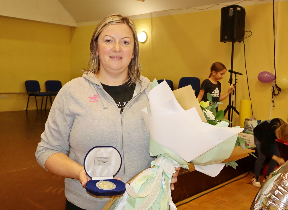 Gordana Zvošec (40) iz Donjeg Vidovca prvo je bila voditeljica starije folklorne grupe, zatim je otišla na porodiljni i nakon povratka, prije 5 godina, prihvatila se vođenja dječjeg folklora umjesto Monike Klobučarić, koja je otišla na porodiljni. Ima puno iskustva s djecom, i u folklornom svijetu u kojem je već 30 godina, od svoje 10. godine, i kao učiteljica.