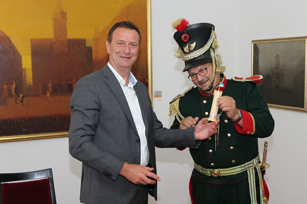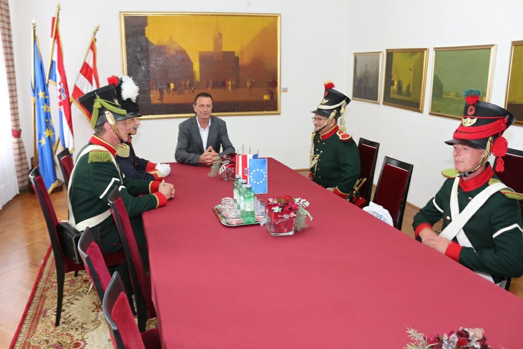 Članove Gradske garde Ravensburga iz Njemačke (Bürgergarde der Stadt Ravensburg) u srijedu je u Gradskoj vijećnici u kraći protokolarni posjet primio gradonačelnik Grada Varaždina dr. sc. Neven Bosilj.