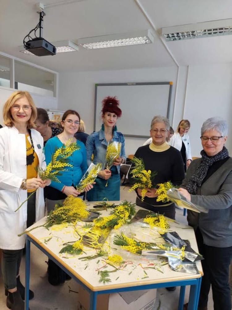 Za današnji 18. hrvatski Dan mimoza veliki dio priprema obavljen je jučer u Zavodu za javno zdravstvo Međimurske županije. Tamo su sa svojom voditeljicom Irenom Šestak, dipl.psih. savjetnik bile Klara, Lara i Mia koje su pomagale u sklopu Humanitarne grupe OŠ I. G. Kovačića Sveti Juraj na Bregu u pakiranju mimoza i prikupljanjem donacija za Županijsku ligu protiv raka Čakovec.
