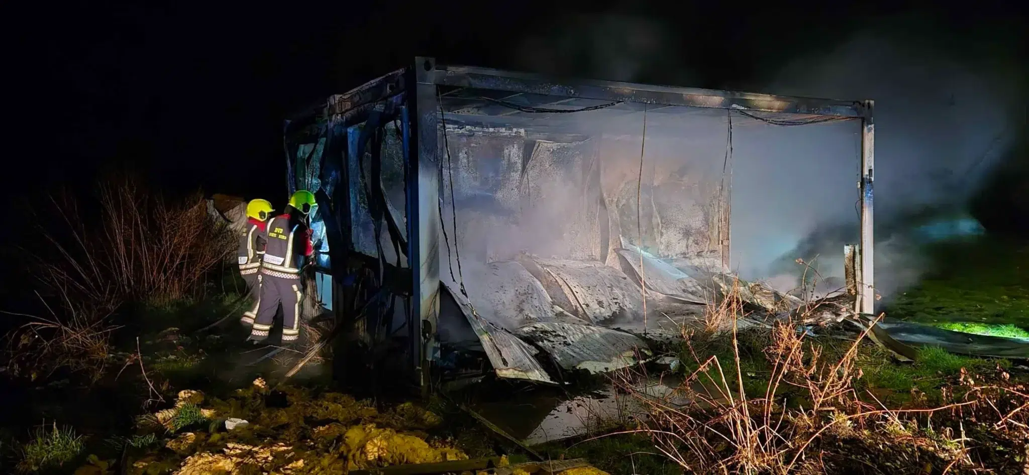 Dolaskom na lokaciju ustanovljeno je da je požar već u potpunosti zahvatio kontejnersku kuću.