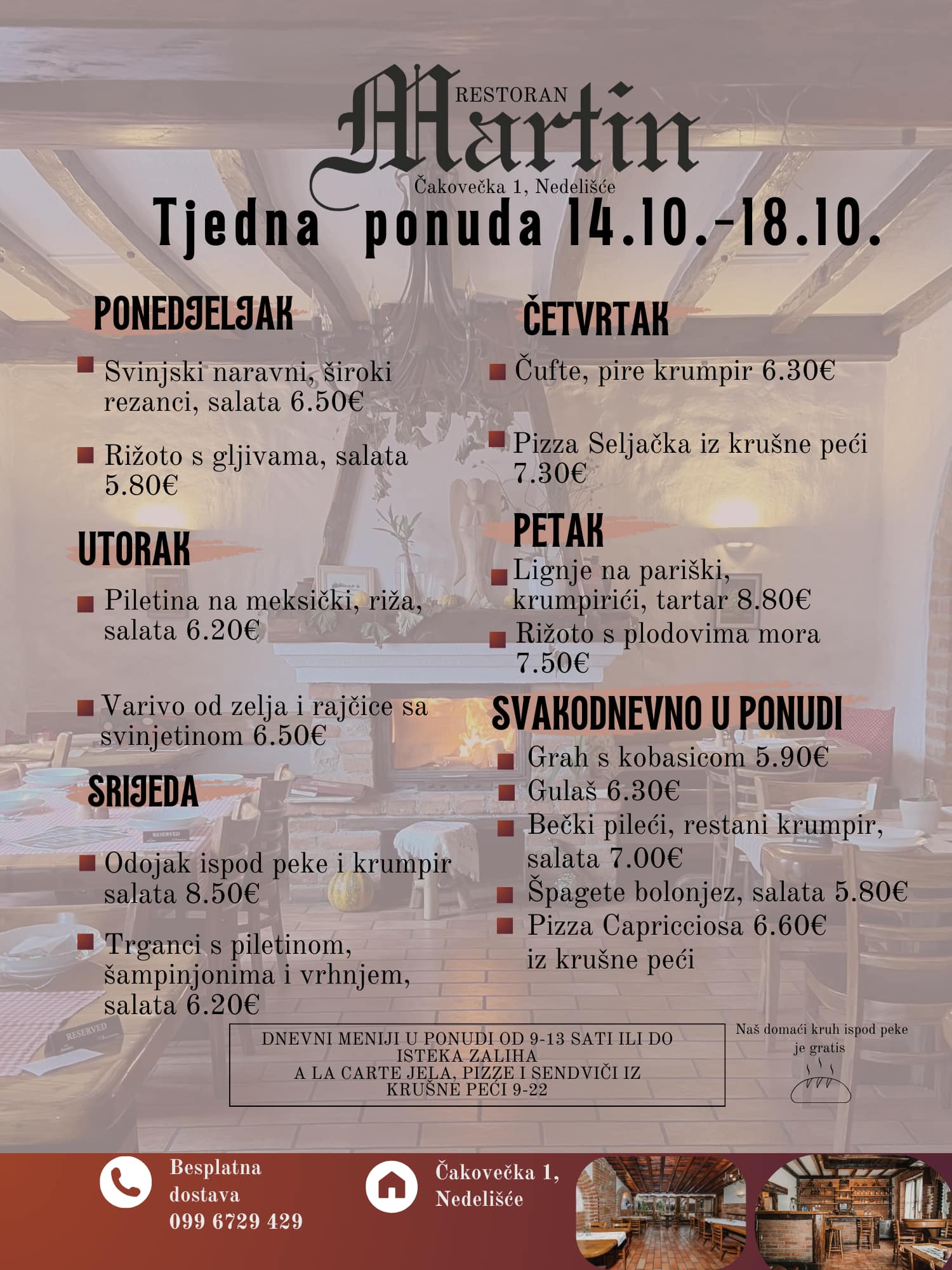 Restoran Martin u Nedelišću poziva da iskoristite tjednu ponudu gableca od 14. do 18. listopada.