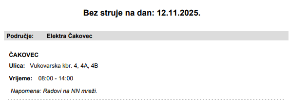 Iz HEP-a javljaju da električne energije 12. studenog neće biti u Čakovcu!