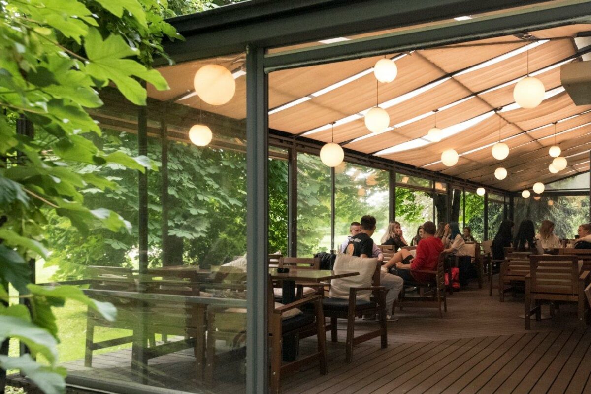 Kafić se sastoji od zatvorenog prostora i vanjske otvoreno/zatvorene terase s dodatnom mogućnošću proširenja iste za otprilike 100 kvadrata.