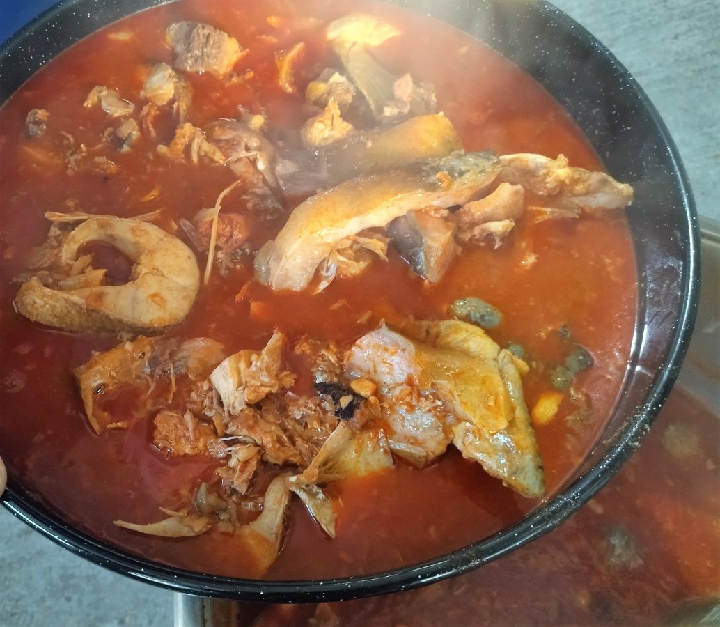 – Nema tu nikakve tajne. Ja sam danas koristio četiri vrste slatkovodnih riba: šarana, štuku, smuđa i soma. Može se skuhati i s dvije vrste. Od njihovih glava, koje sam dobro skuhao i propasirao da odvojim kosti, napravio sam temeljac. Ribe sam narezao na manje komade, obično u obliku potkova, i kad je temeljac zavrio, polako sam ih stavljao u lonac. Posolio i začinio s dosta mljevene paprike. Paprika mora davati osnovni ton fišu, pa nemojte štedjeti na njoj. Stavlja se u omjeru 8 dijelova slatke i 2 dijela ljute paprike. Zapravo, ljutu papriku stavite po vlastitoj želji i afinitetu. Treba pustiti da riba zavrije bez miješanja, samo protresite lonac ili zavrtite kotlić. I otprilike za sat vremena fiš je spreman za serviranje. Neki kao prilog serviraju široke rezance, ali meni je svakako najbolji čisti, bez ikakvog dodatka – otkrio je recept Željko Horvat.