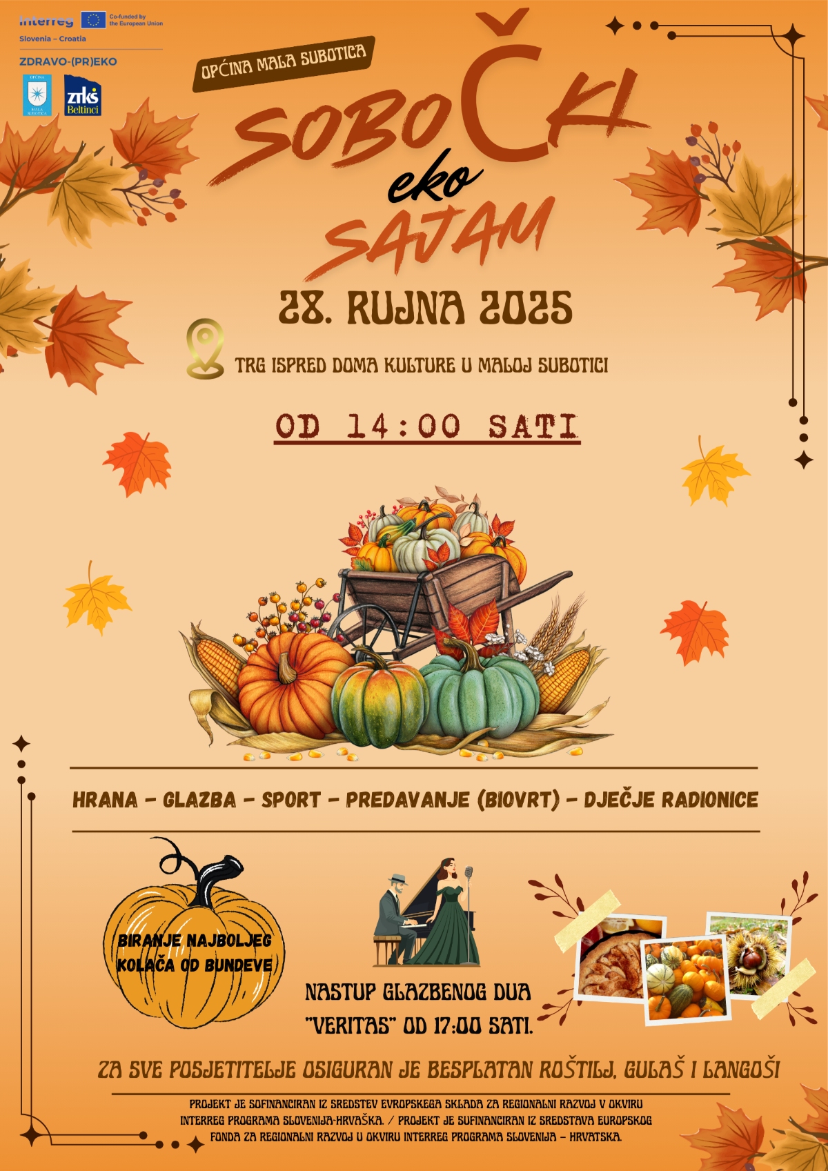 U nedjelju, 28. rujna 2025. godine, na trgu ispred Doma kulture u Maloj Subotici održat će se Jesenski sajam Općine Mala Subotica.