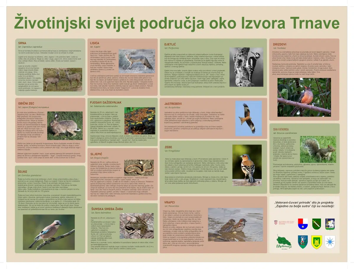 Za kraj 2024. godine područje oko izvora Trnave upotpunili smo sa dvije edukativno-natpisne ploče. Sadrže podatke o biljnom i životinjskom svijetu. Zanimljivosti o životinjskim vrstama i njihovim karakteristikama te koja su ljekovita svojstva drveća sa ovog područja.