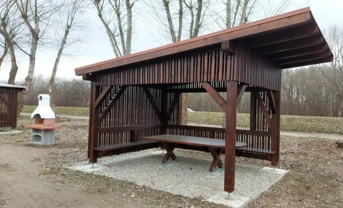 Ovih nadstrešnica, građenih od crnogorice prve klase, bruto površine 19,80 m2, visine 2,40 m, svaka sa fiksnim stolom i dvije klupe, ima ukupno 56.