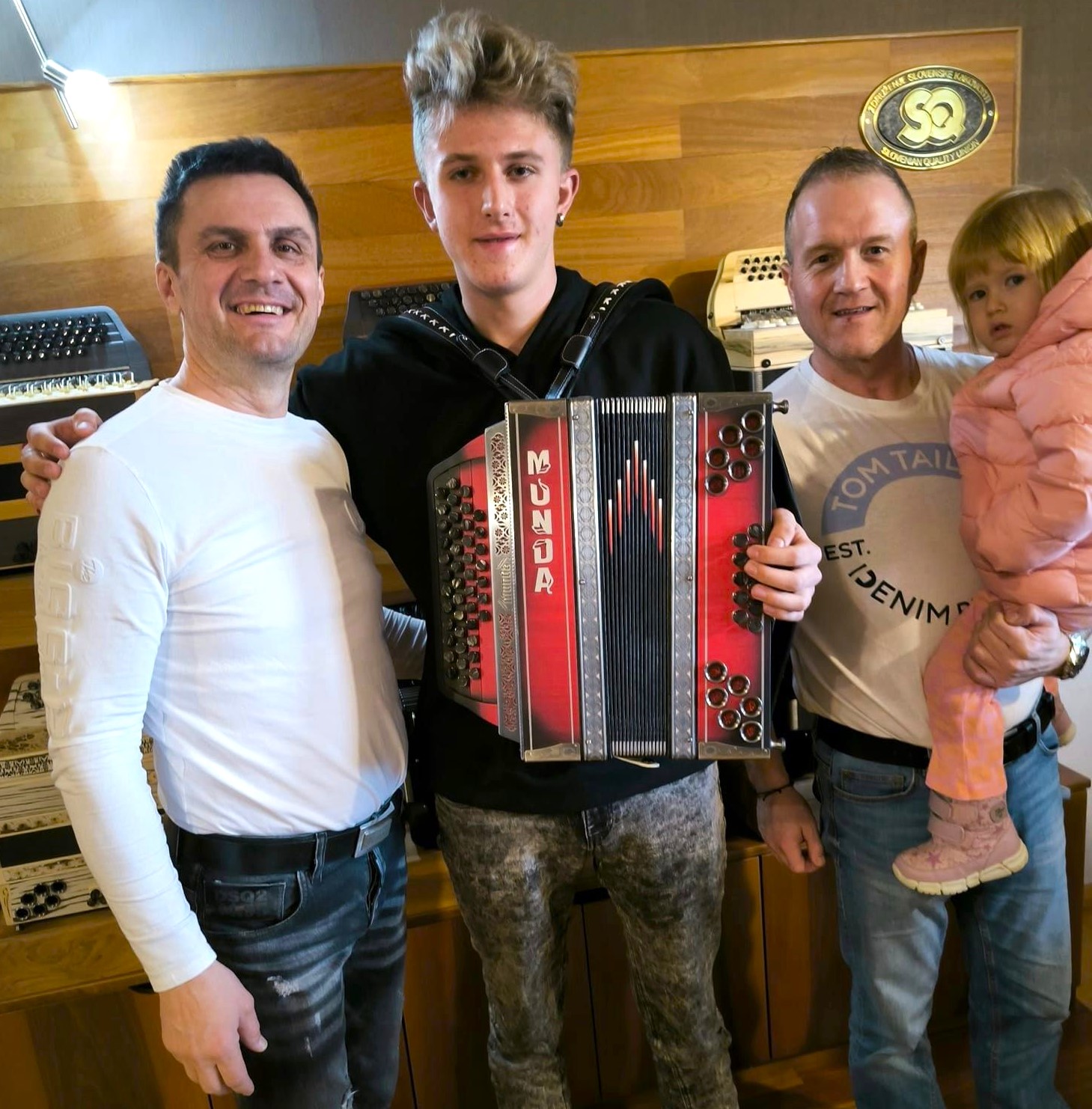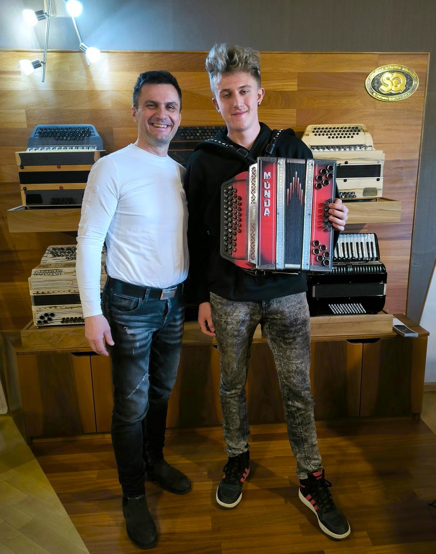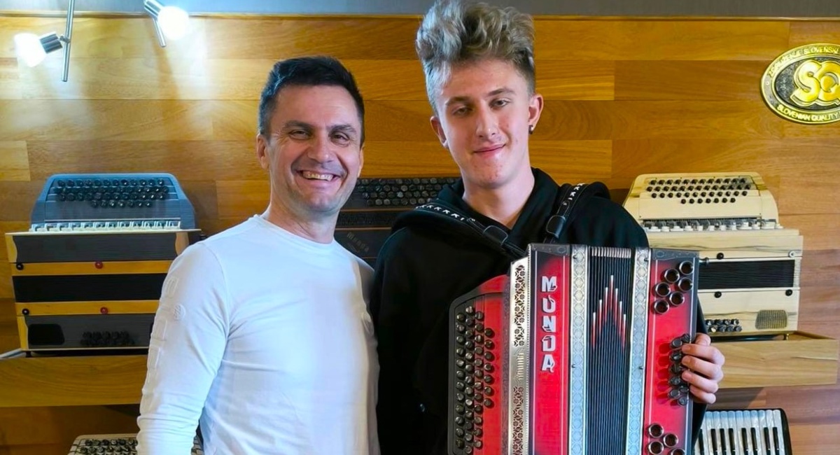 Jučer je stigla crno-crvena harminika Munda: crna boja za snagu, crvena za emocije. Proizvođač Zlatko Munda iz Maribora osobno ju je dostavio i predao mladom glazbeniku, poželivši da ga dobro služi. Ovoj neopisivoj radosti bio je nazočan i učitelj Srečko Kotnik.