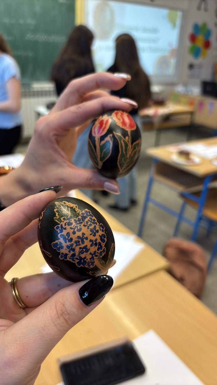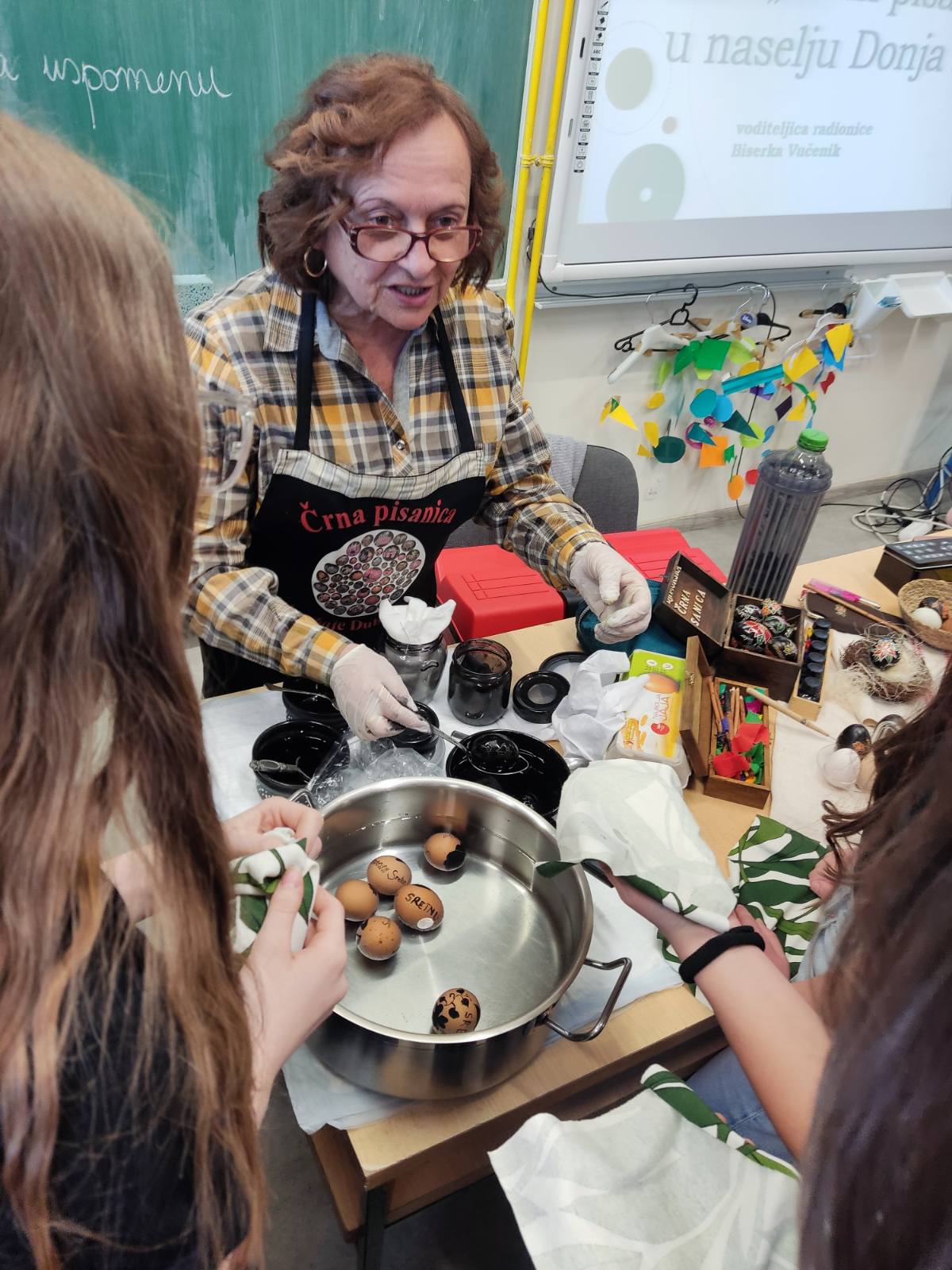 Majstorica zanata, gospođa Biserka Vučenik, imala je puno volje i strpljenja te je vodila učenike kroz sam proces izrade črne pisanice. To malo jaje zahtijeva puno truda, ali neopisiv je osjećaj vidjeti konačan proizvod. Stečena su nova iskustva koja će učenici sigurno prenijeti i u svojoj školi.