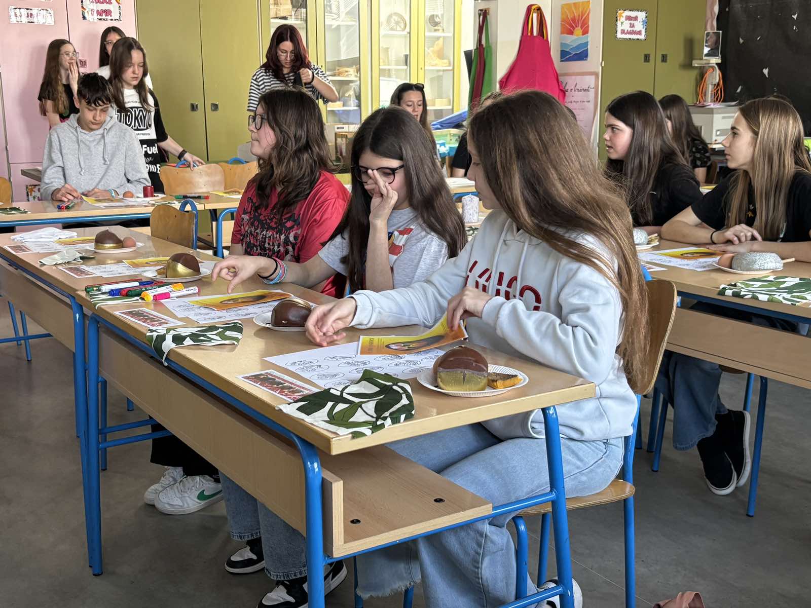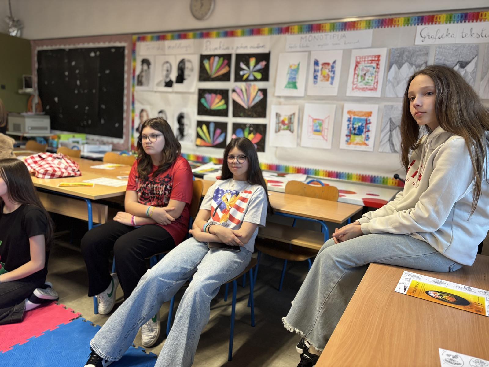 Učenice koje su strpljivo i marljivo čoskale bile su: Lara Krčmar, Estella Janušić, Gita Brez, Tena Horvat, Rea Nađ i Karla Čavlek, uz pratnju učiteljice likovne kulture i školske knjižničarke.