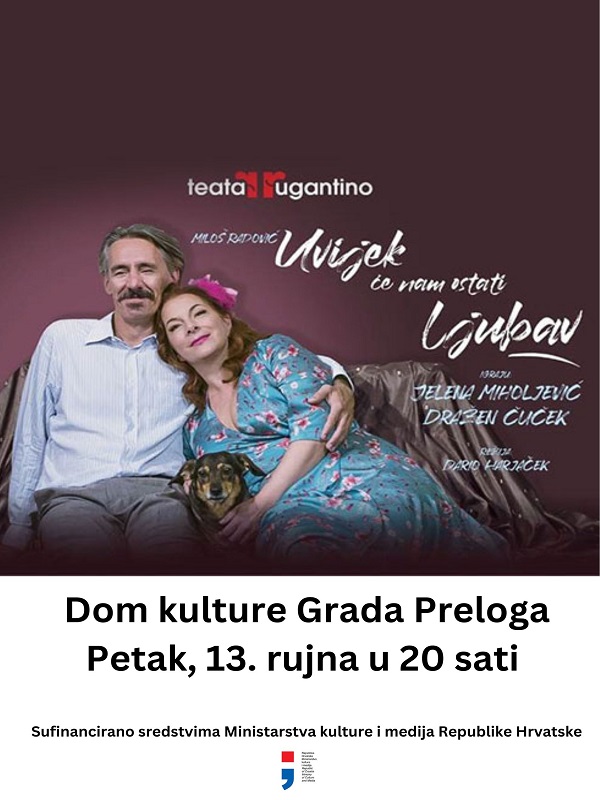 Dom kulture Grada Preloga poziva, u petak 13. rujna, na kazališnu predstavu Teatra Rugantino „Uvijek će nam ostati ljubav“. Početak je u 20 sati. Predstava je sufinancirana sredstvima Ministarstva kulture i medija Republike Hrvatske. Cijena ulaznice je 7 eura.
