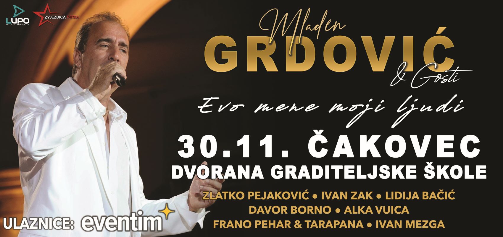 U sklopu turneje „Evo mene moji ljudi“ kojom slavi 45 godina karijere, Mladen Grdović 30. studenog stiže u Čakovec, gdje će održati veliki koncert u dvorani Graditeljske škole u Čakovcu, s početkom u 20 sati.