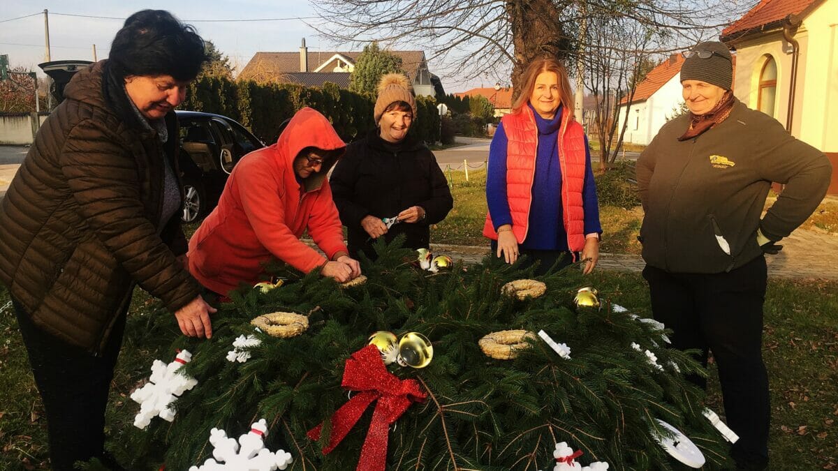 Članice redovito organiziraju kreativne radionice, a tradicionalno su i ove godine održale radionicu izrade malih stolnih božićnih vijenaca koje nam članica Đurđica Lepen s ponosom pokazuje.