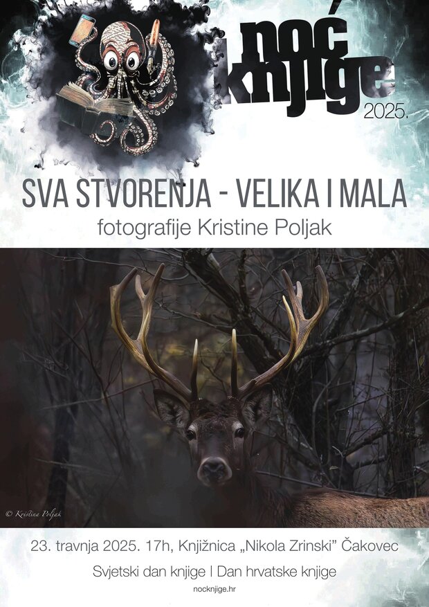 Knjižnica „Nikola Zrinski“ Čakovec  vas poziva na otvorenje izložbe fotografija “Sva stvorenja – velika i mala” Kristine Poljak koje će se održati u srijedu 23. travnja 2025. godine, u 17 sati.