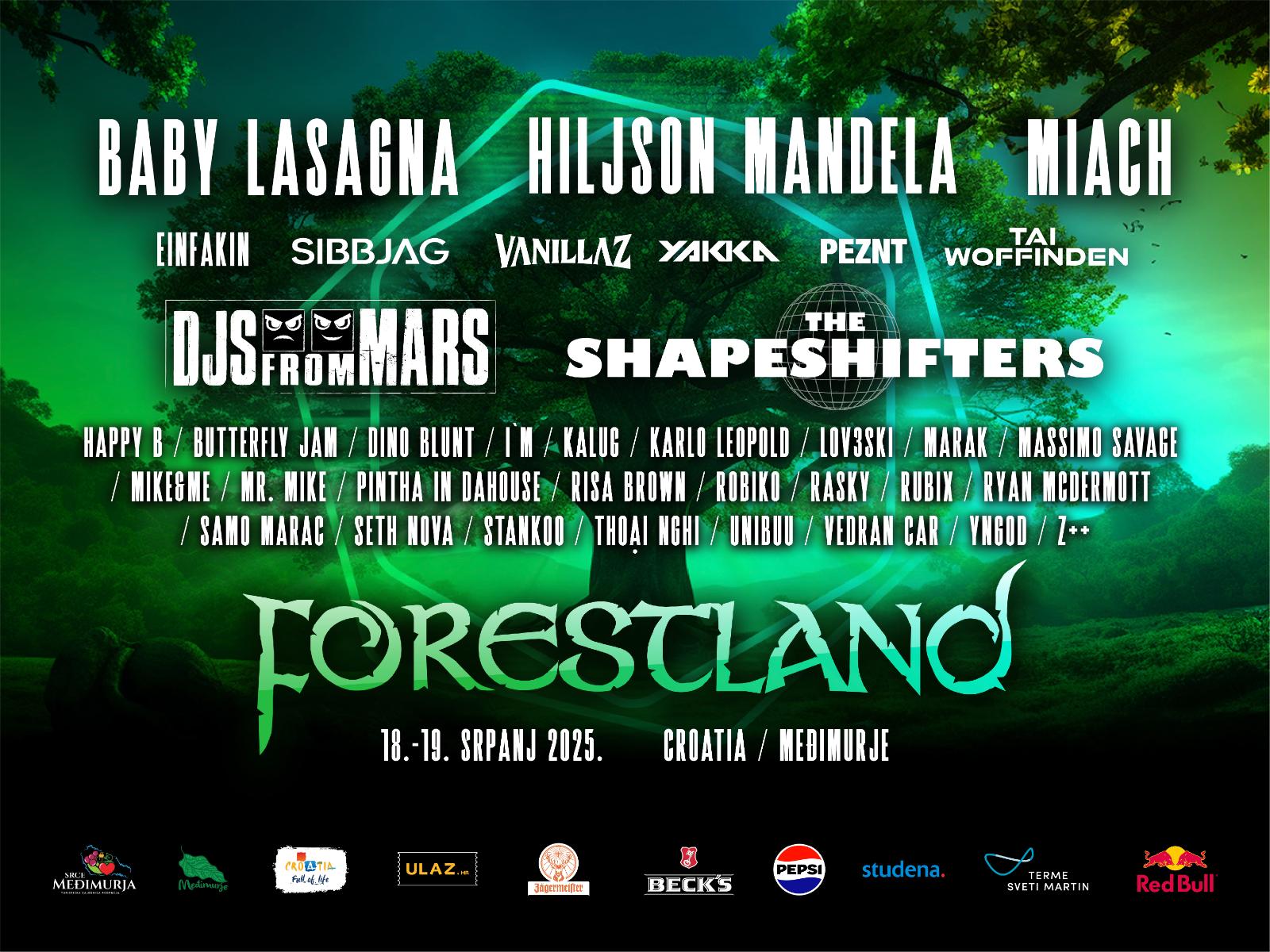 Ljeto na sjeveru znači Forestland! Miach, Hiljson, Baby Lasagna, Shapeshifters, DJ’s from Mars i još pedesetak drugih izvođača stižu na Forestland u međimurskom Brezju.