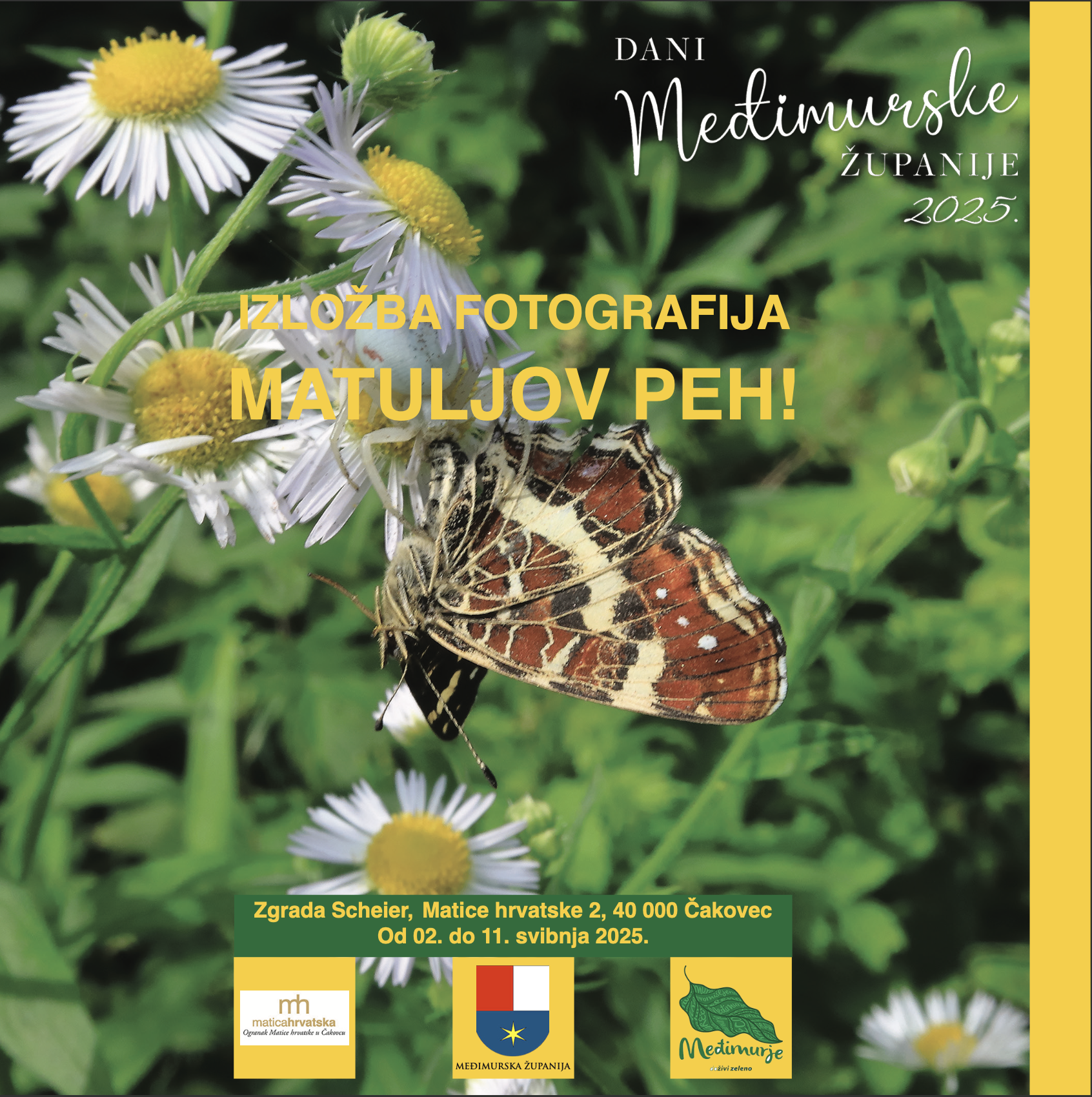 Povodom obilježavanja Dana Međimurske županije, u zgradi Scheier u Čakovcu, u petak, 2. svibnja 2025. godine, u 18 sati otvorit će izložba atraktivnih fotografija pod nazivom “MATULJOV PEH“, neumornog autora Josipa Horvata Majzeka i sigurno najboljeg poznavatelja životinjskog svijeta u Međimurju, pa i šire.