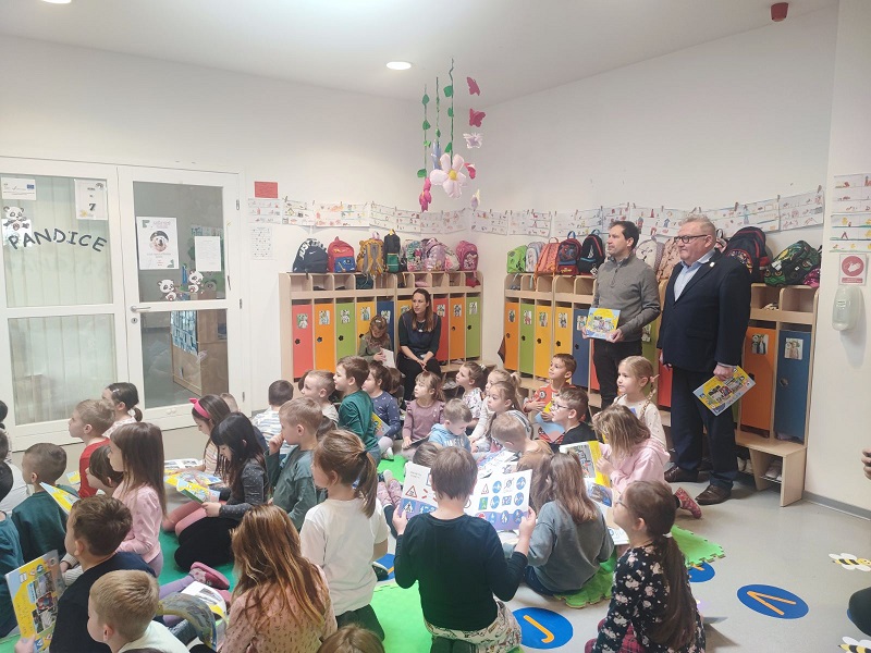 Djeca su tom prilikom dobila reflektirajuće prsluke i knjige pod nazivom „Djeca u prometu kao pješaci i putnici“, autora Dine Posavca, koje će im pomoći da bolje razumiju važnost sigurnosti u prometu.