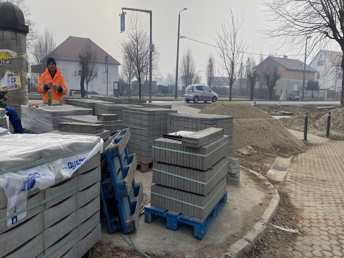 Na terenu danas unatoč niskim temperaturama u pojačanom sastavu radi oko deseta radnika, a kako bi radovi čiji je završetak najavljen krajem siječnja 2024. godine, bili završeni tijekom veljače. U tijeku je postavljanje tlakovca, ističu radnici koje smo zatekli na licu mjesta, a u međuvremenu se radna skupina okupila na kratku pauzu kako bi objedovala. Mrzlo je, ali nama ne smeta. Malo zajtreka, a onda dale na posel – rekao je jedan od njih.