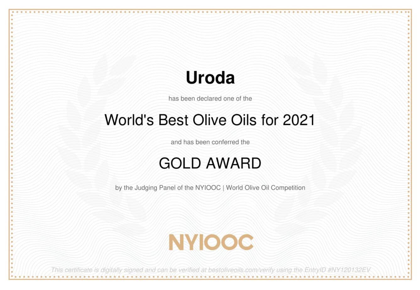 Formulu uspjeha je, međutim, pronašao vrlo brzo, pa je već 2018.godine na Danima mladog maslinovog ulja u Vodicama, u jakoj međunarodnoj konkurenciji, osvojio zlatnu medalju. Taj je uspjeh na istom ocjenjivanju ponovio 2020.godine. Kao kruna svih dosadašnjih napora ovih je dana stiglo veliko priznanje s najprestižnijeg svjetskog natjecanja NYIOOC World Olive Oil Competition u New Yorku. Tamo je, među 1.171 uzorkom iz cijelog svijeta, maslinovo ulje Uroda dobilo zlatnu medalju.